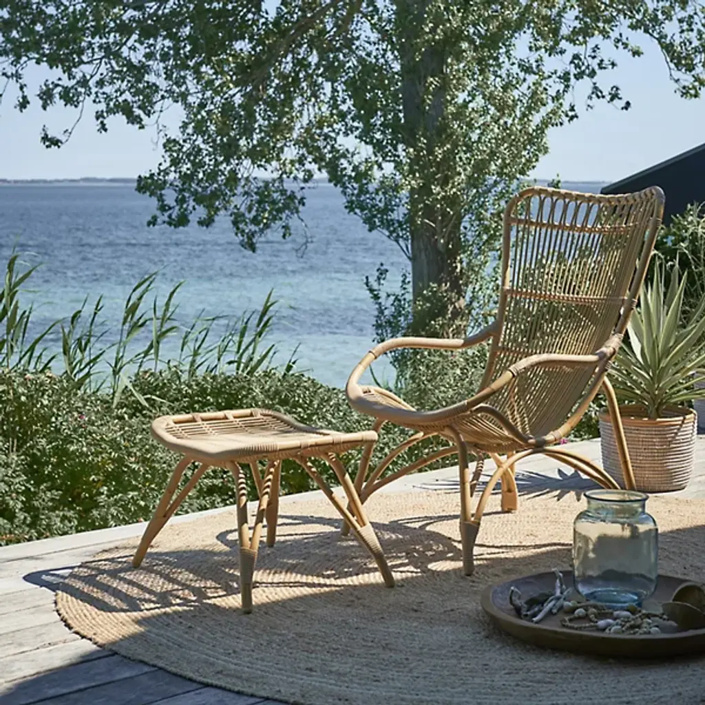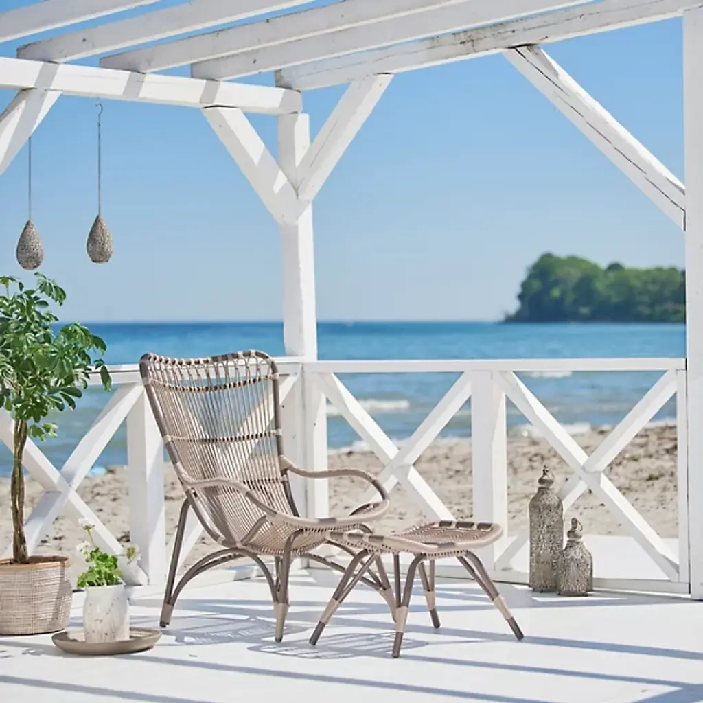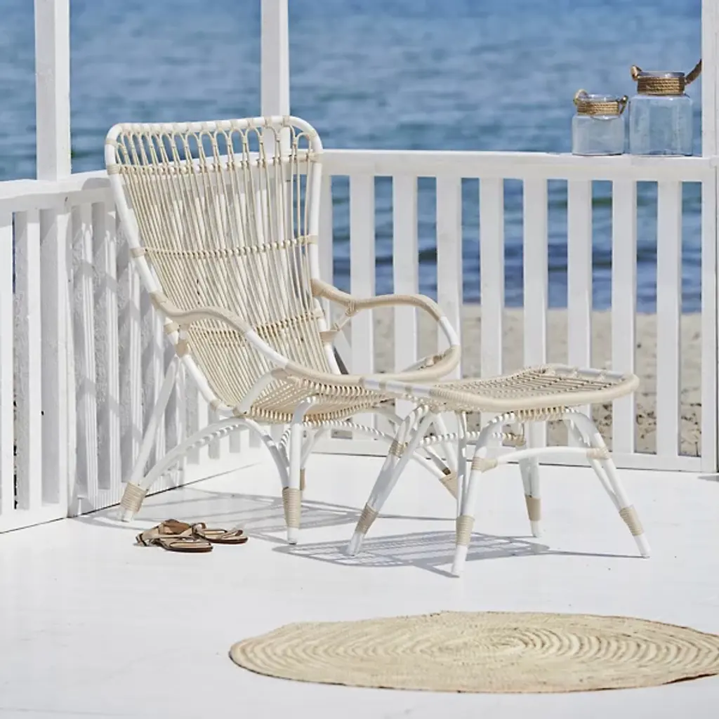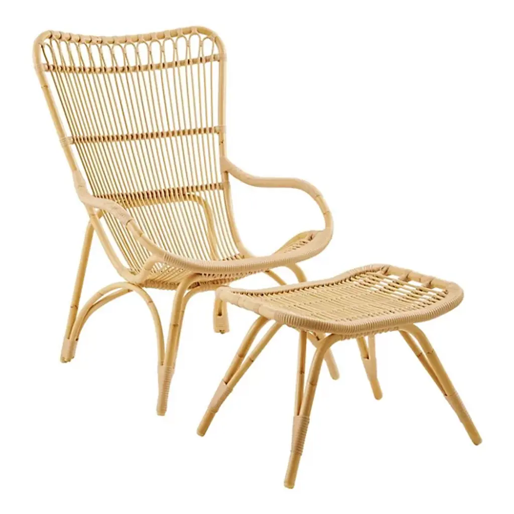 Ample support with a stylish appearance, the Sika Design Monet Outdoor Highback Lounge Chair and Footstool is perfect for year long outdoor seating. This outdoor chair is crafted with an ultra-supportive high back design and is made from a combination of aluminum and AluRattan. The powder coated frame adds ample stability, while the AluRattan allows for maintenance free outdoor use. Plus, the footstool let's you fully kick back and get the most out of your relaxation time. Use this chair to get the most out of your patio or porch area.