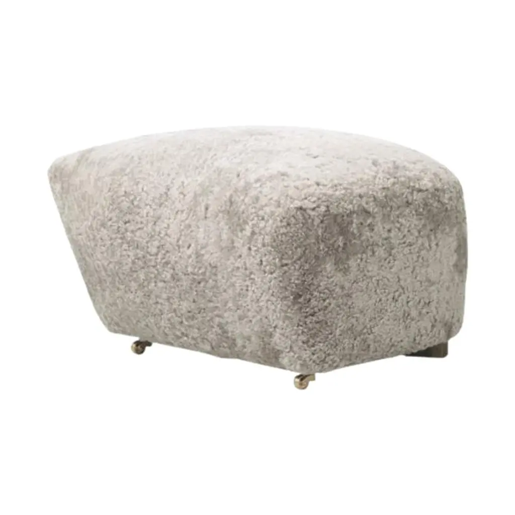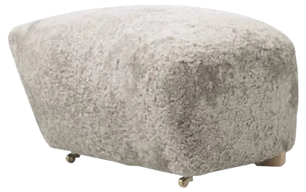 Moonlight natural oak sheepskin the tired man footstool by LassenDimensions: W 55 x D 53 x H 36 cm Materials: SheepskinFlemming Lassen designed the overstuffed easy chair, The Tired Man, for The Copenhagen Cabinetmakers’ Guild Competition in 1935. It is characterised by organic, bearlike shapes and then as now it created a sensation with its curved form and voluminous armrests. Sitting in the chair should, in Flemming Lassen’s own ords, be ”as warm and safe as a polar bear cub in the arms of its mother in the middle of the ice cap”. The family man Flemming Lassen valued intimate relationships - with its warm exterior, The Tired Man invokes domestic cosiness and socialising by candlelight.By Lassen is a Danish design brand focused on iconic designs created by Mogens and Flemming Lassen, founded by Lassens’ relatives in 2008. Brothers Mogens (1901-1987) and Flemming (1902-1984) Lassen are known as two of Denmark’s greatest architects and designers. Both were renowned pioneers of Danish functionalism and modernist architecture, honoured with numerous prestigious medals and awards. Headed by Mogens Lassen’s grandson Søren Lassen, by Lassen carries on the brothers’ design philosophy by manufacturing their iconic designs as well as products by other designers that complement the Lassen’s functionalist style. The company’s mission is to continue the tradition of timelessness, functionality and quality, and to introduce the Lassen’s design heritage to new generations.
