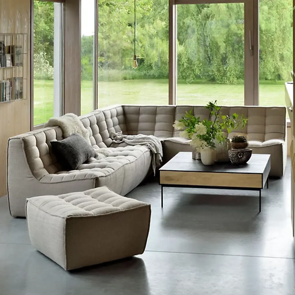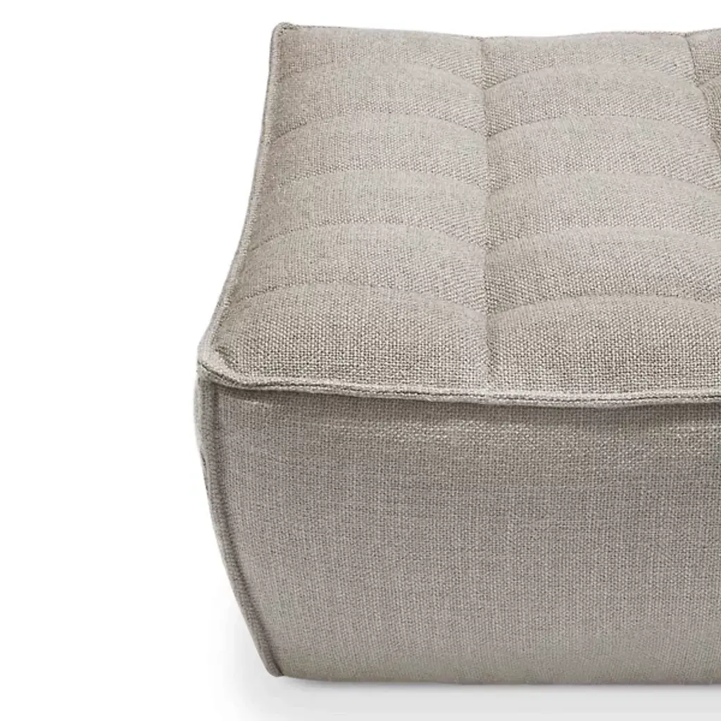 Rest your feet on top of the N701 Footstool by Ethnicraft, designed by Jacques Deneef who believes in using simple materials to create stunning pieces of furniture. The ottoman has the same texture as the sofas, with a quilted and cushioned look that is both modern and stylish. The ottoman is available in two different, neutral colors, and the entire ottoman is upholstered. While there is no visible base, the piece can stand on its own by the support of the cushioned, comfortable material. The N701 collection can be pieced together or used individually, based on the needs from the design of the living room.