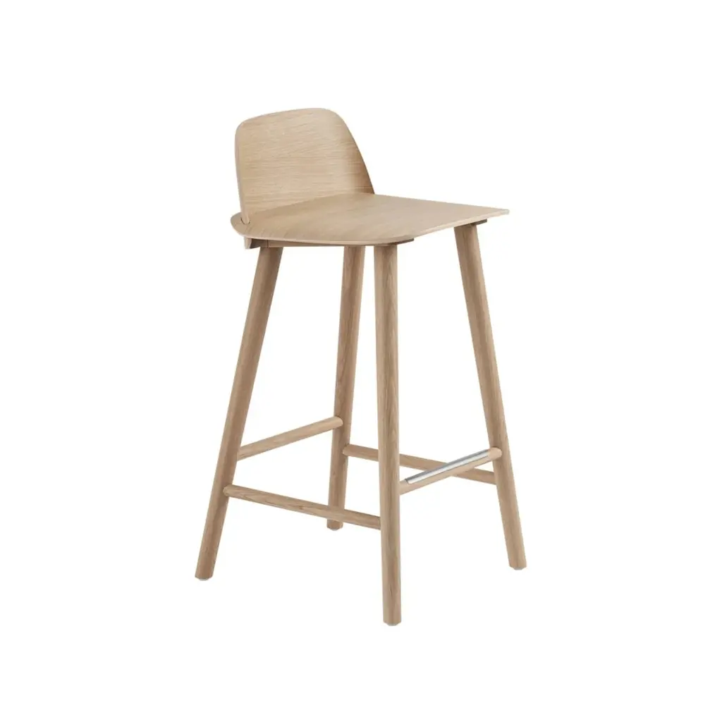 The soft-finish and curvy shape of the plywood seat encourages users to sit on these stools from any side. And the low back rest is just enough for comfort and support. From the all-wood seating series by David Geckeler (also check out the corresponding Nerd Chair) suggests is testament that Nerds will inherit the Earth...or at least, command a room.David's design reflects signature Scandinavian qualities in terms of materials, craftsmanship and profile. Yet Nerd looks new Beckuse of its overall expression, including a range of 8 colors to mix and match. The standout feature, of course, is the intersection of the back through the seat. A strong statement alone in an office or salon, or as a set around a dining table. It took the Beckers International Design Award in 2011. And Danish brand Muuto not only gave it its 2012 Talent Award; as manufacturing partner, it also decided to set the Nerds out into the world. Furniture, tableware and lighting are among the categories David's work emphasizes. He studied industrial design at the Royal Danish Academy of Fine Arts in Copenhagen and, later, graduated from the University in Berlin, where he now keeps his studio.