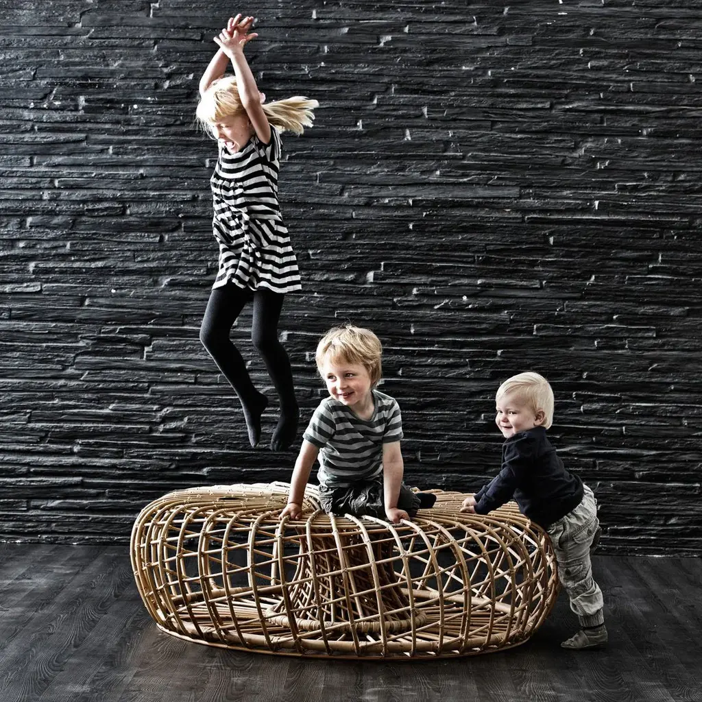 A footstool, a coffee table or a multiple-use sculpture made of sustainable natural rattan. The astonishing construction is lightweight yet extremely strong. Nest is designed in Denmark but created in Indonesia by experienced rattan weavers with a long tradition of this craftsmanship. Indoor use only.