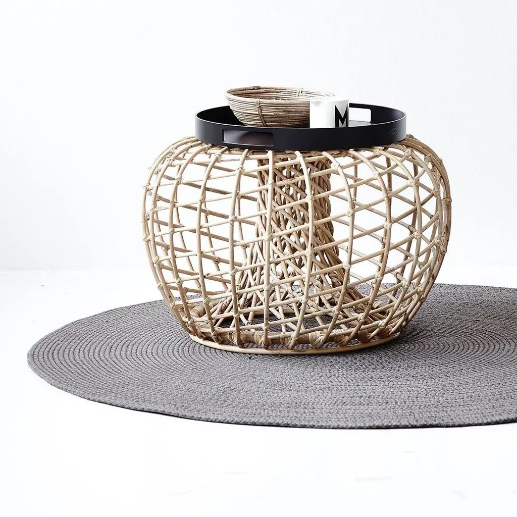 A footstool, a coffee table or a multiple-use sculpture made of sustainable natural rattan. The astonishing construction is lightweight yet extremely strong. Nest is designed in Denmark but created in Indonesia by experienced rattan weavers with a long tradition of this craftsmanship. Indoor use only. Note: Frame and cushion may be shipped separately and lead times may vary. Please contact us for more information.