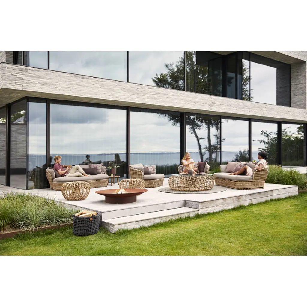 Cane-line’s Nest outdoor footstool is a fine example of Danish design. Designed by Foersom & Hiort-Lorenzen, the footstool is made of aluminum and Cane-line Weave, a fiber material made of dyed and hard-wearing polyethylene. The material is ideal for outdoor use as it is highly weather-resistant and maintains its colors and shape for years on end. Pair the footstool with the Nest lounge chair or sofa and create a cozy reading nook on the balcony or a lovely lounge area in the garden. The footstool doubles as an extra seat or a small coffee table.