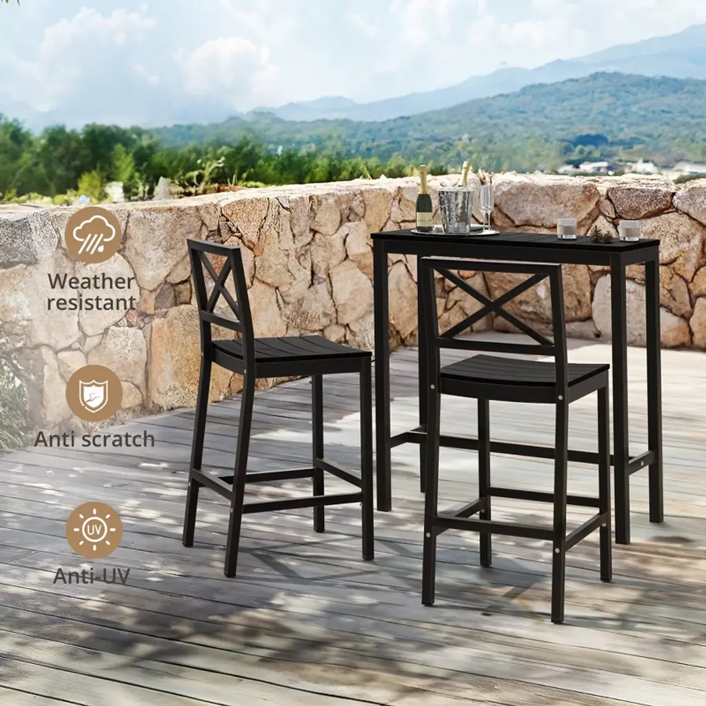 Outdoor Bar Stools Set Of 2, 26 Inch All Weather Hdps Patio Counter Height Barstools With Back & Footrest, Aluminum Bar Stool Chairs