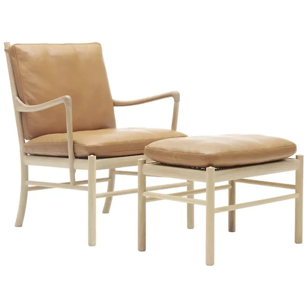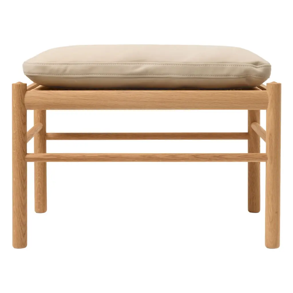Complete your modern Colonial furniture grouping with the Carl Hansen OW149-F Colonial Footstool. Originally designed in 1949 by Ole Wanscher, this ottoman remains relevant with a simple form and high quality materials. It features a solid wood base and hand woven cane top to support the soft leather cushion.
