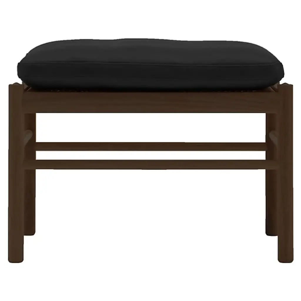 A simple design, now in basic black. The Carl Hansen OW149F Colonial Footstool - Black Edition pairs a black-stained oak frame with a plush cushion upholstered in black Fiord fabric or Thor leather. A hand woven cane seat under the cushion provides support and is the most obvious evidence of the fine craftsmanship that went into the making of the entire footstool.