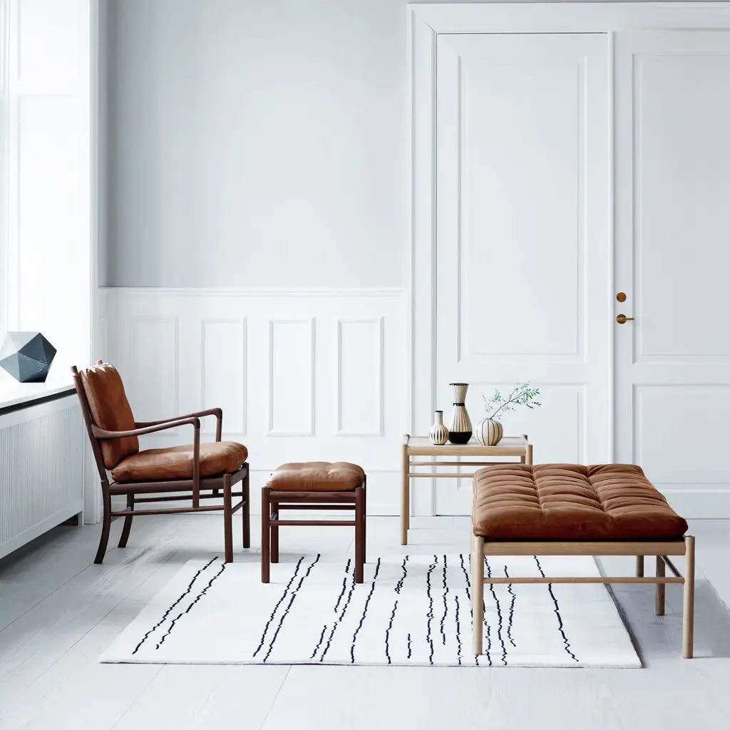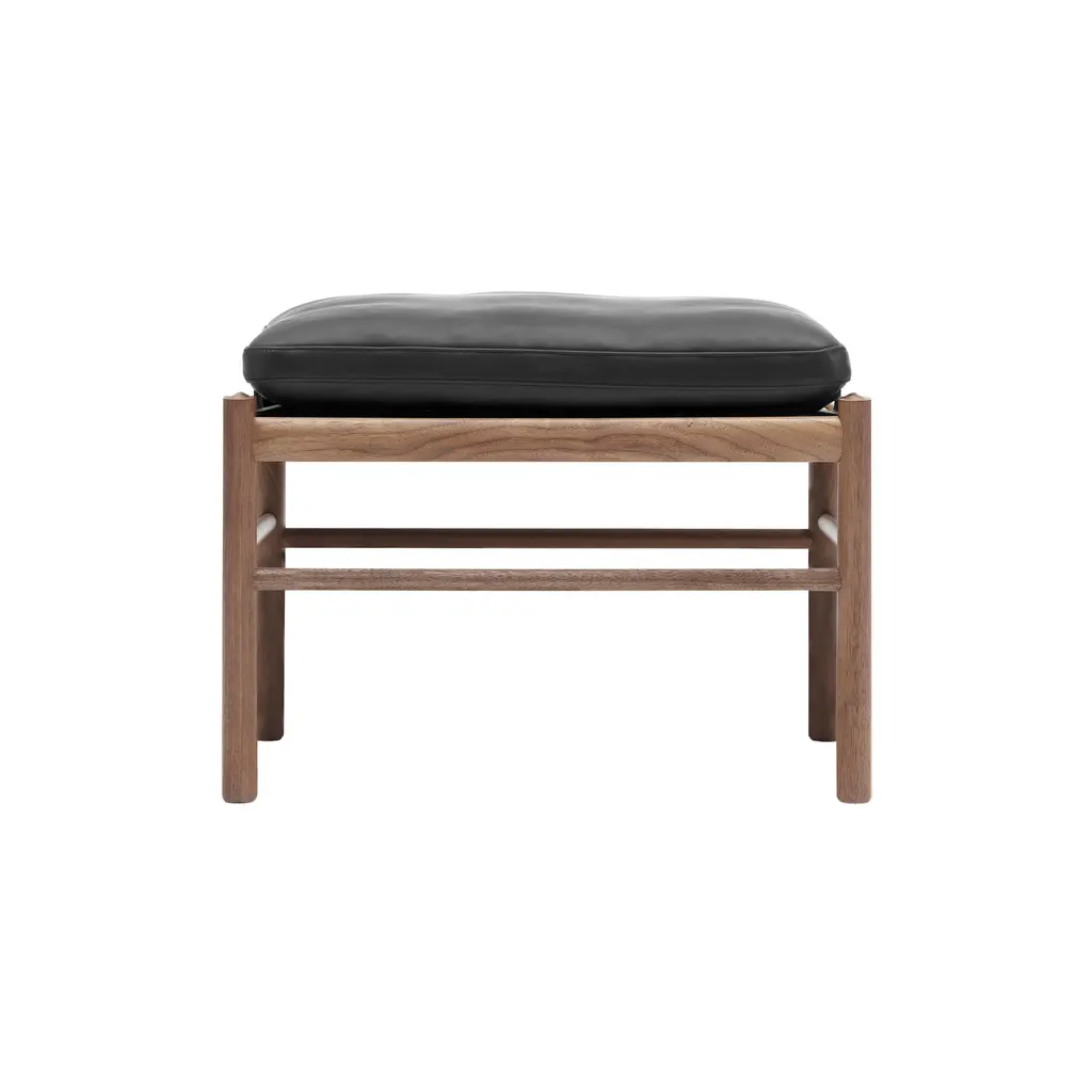 Perfectly complementary as a footrest paired with its sibling Colonial lounge chair, OW149 it is a beautiful object in and of itself. With the same wealth of upholstery choices and a hand-woven cane seat, the footstool's solid-wood construction features the collection's range of outstanding finishes in solid oak or walnut. Accompanying Danish designer Ole Wanscher original seating that debuted in 1959, it has the timeless air and slender dimensions he found the most pleasing.