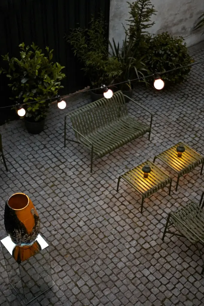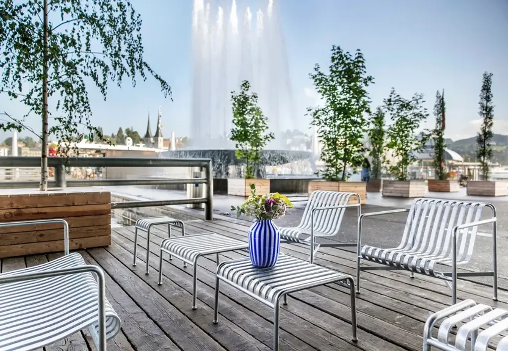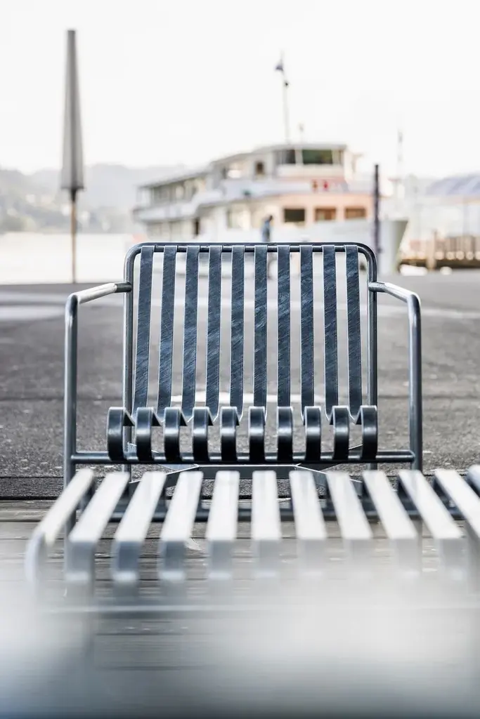 Designed by French brothers Ronan and Erwan Bouroullec, Palissade is a collection of outdoor furniture for HAY in powder coated or hot galvanised steel. United by a common principle of symmetrical geometry, the Palissade collection is engineered to reproduce the same visual simplicity and core strength throughout. Designed in colour and form to integrate effortlessly into a natural landscape or urban setting, Palissade is intended to be used over a longer period of time and become more beautiful over the years. The collection is suited to a wide variety of environments, from cafés and restaurants to gardens, terraces and balconies.Powder coated steel or hot galvanised steel. The products in the Palissade Collection have a two component coating; a primer and an outdoor powder coating which provides a barrier to corrosive elements making it suitable for outdoor use.Available in different finishes:- Anthracite powder coated steel (RAL 9011)- Sky grey powder coated steel (RAL 7038)- Olive powder coated steel (RAL 6003)- Hot galvanised steel- Iron red powder coated steel (RAL 8015)