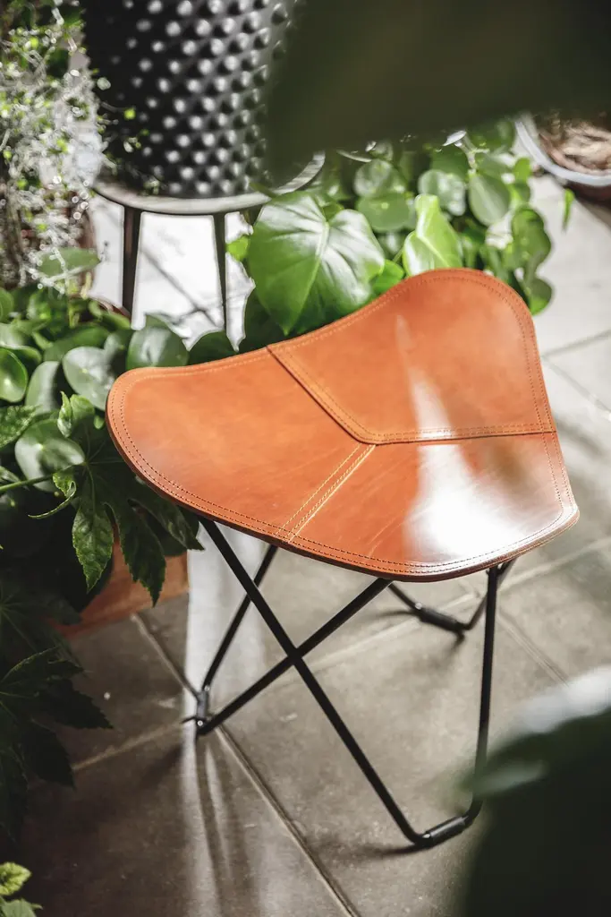 Pampa Flying Goose Footstool by Cuero DesignDimensions: D 48 x W 47 x H 48 cm.Materials: Leather and metal.Finish: Chocolate leather and black frame.Weight: 5,5 kg.Available in different upholstery and metal color options and finishes. Prices may vary. Please contact us.Designed to be easily carried around, this stool is ideal to have on hand. Stable and sturdy, the Flying Goose will be your best ally on any occasion. With its compact design and weightlessness, you won't ever have to worry about it being a burden. Its floor protectors won't damage your floors and ensure stability when you sit on it. The alliance of solid 12mm Swedish steel and Italian leather guarantees an ever-lasting stool, no matter the use.Cuero DesignWe make furniture that we want to have in our own homes. Everything has to be comfortable, beautiful, and very high quality. Second-generation family business. Since 1986 - My father started importing luxury leather goods from South America to Sweden. He eventually discovered the butterfly chair which is a classical design from Argentina and became obsessed. 15 years of his life were dedicated to improving its shape and quality. Agustina is from Patagonia and Nils is from Sweden.
