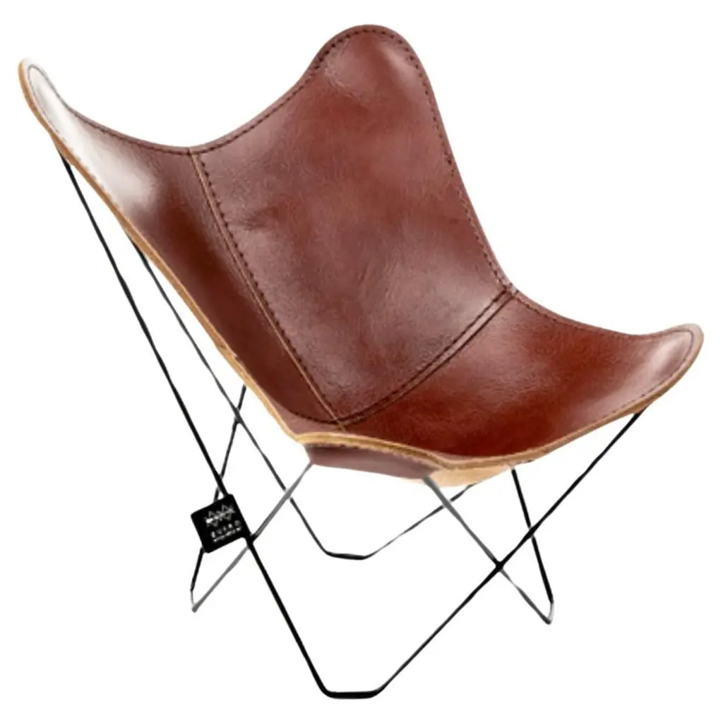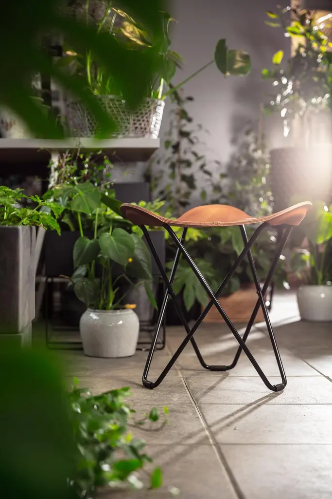 Pampa Flying Goose Footstool by Cuero DesignDimensions: D 48 x W 47 x H 48 cm.Materials: Leather and chrome.Finish: Polo leather and chrome frame.Weight: 5,5 kg.Available in different upholstery and metal color options and finishes. Prices may vary. Please contact us.Designed to be easily carried around, this stool is ideal to have on hand. Stable and sturdy, the Flying Goose will be your best ally on any occasion. With its compact design and weightlessness, you won't ever have to worry about it being a burden. Its floor protectors won't damage your floors and ensure stability when you sit on it. The alliance of solid 12mm Swedish steel and Italian leather guarantees an ever-lasting stool, no matter the use.Cuero DesignWe make furniture that we want to have in our own homes. Everything has to be comfortable, beautiful, and very high quality. Second-generation family business. Since 1986 - My father started importing luxury leather goods from South America to Sweden. He eventually discovered the butterfly chair which is a classical design from Argentina and became obsessed. 15 years of his life were dedicated to improving its shape and quality. Agustina is from Patagonia and Nils is from Sweden.