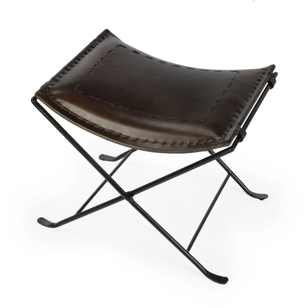 Pampa Flying Goose Footstool by Cuero DesignDimensions: D 48 x W 47 x H 48 cm.Materials: Leather and chrome.Finish: Oak leather and chrome frame.Weight: 5,5 kg.Available in different upholstery and metal color options and finishes. Prices may vary. Please contact us.Designed to be easily carried around, this stool is ideal to have on hand. Stable and sturdy, the Flying Goose will be your best ally on any occasion. With its compact design and weightlessness, you won't ever have to worry about it being a burden. Its floor protectors won't damage your floors and ensure stability when you sit on it. The alliance of solid 12mm Swedish steel and Italian leather guarantees an ever-lasting stool, no matter the use.Cuero DesignWe make furniture that we want to have in our own homes. Everything has to be comfortable, beautiful, and very high quality. Second-generation family business. Since 1986 - My father started importing luxury leather goods from South America to Sweden. He eventually discovered the butterfly chair which is a classical design from Argentina and became obsessed. 15 years of his life were dedicated to improving its shape and quality. Agustina is from Patagonia and Nils is from Sweden.
