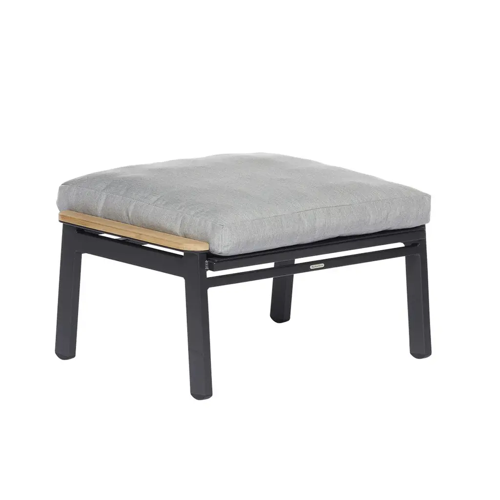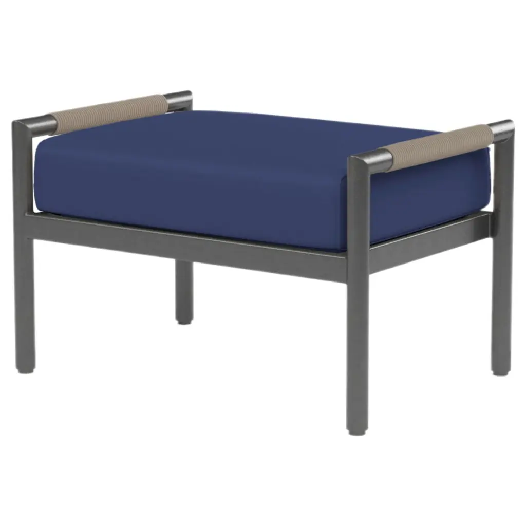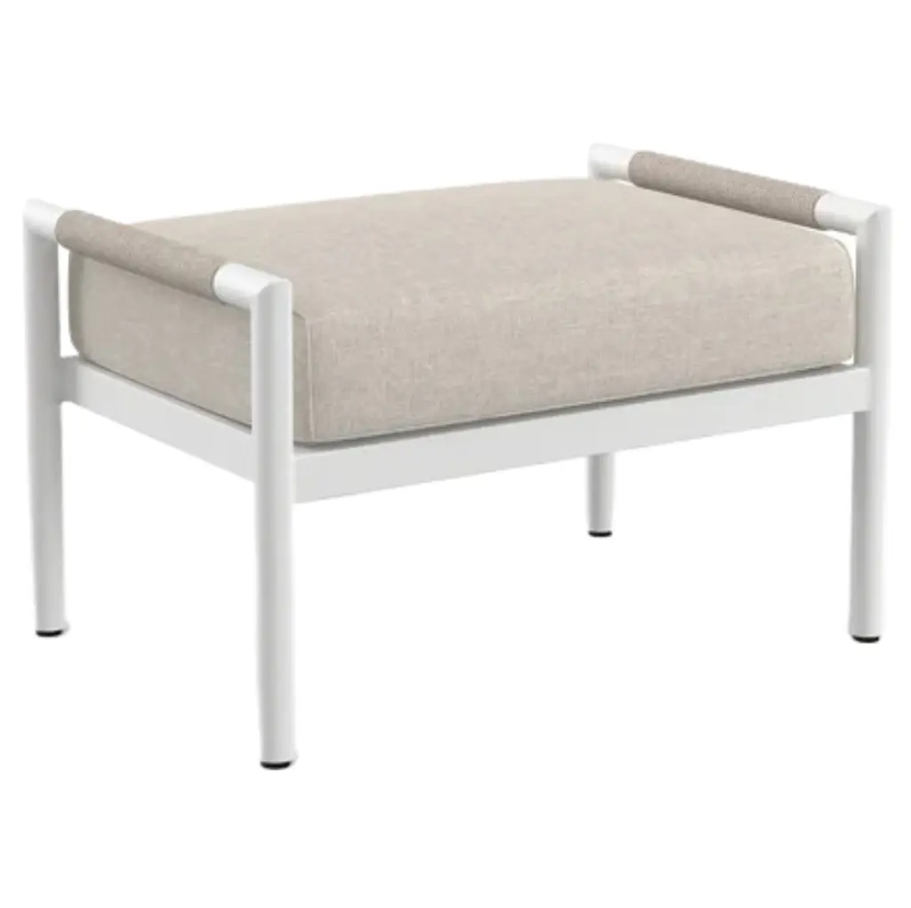 Radius FootstoolFrame made of thermo-lacquered Lava aluminium, and Bronze or Silver rope. Seat cushion.The unique, airy design of the RADOC chair, footstool, lounge chair and sofa collection is perfect for exquisite moments of warmth and closeness. The wrap-around back and armrests, made entirely out of rope, blend seamlessly and give each piece a neomodern yet timeless look and feel. Keep it sober or opt for matching backrest cushions designed for optimal seating comfort for long get-togethers.