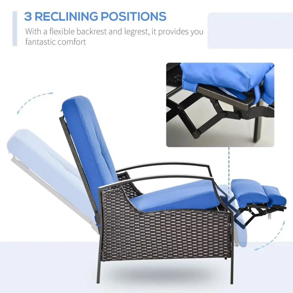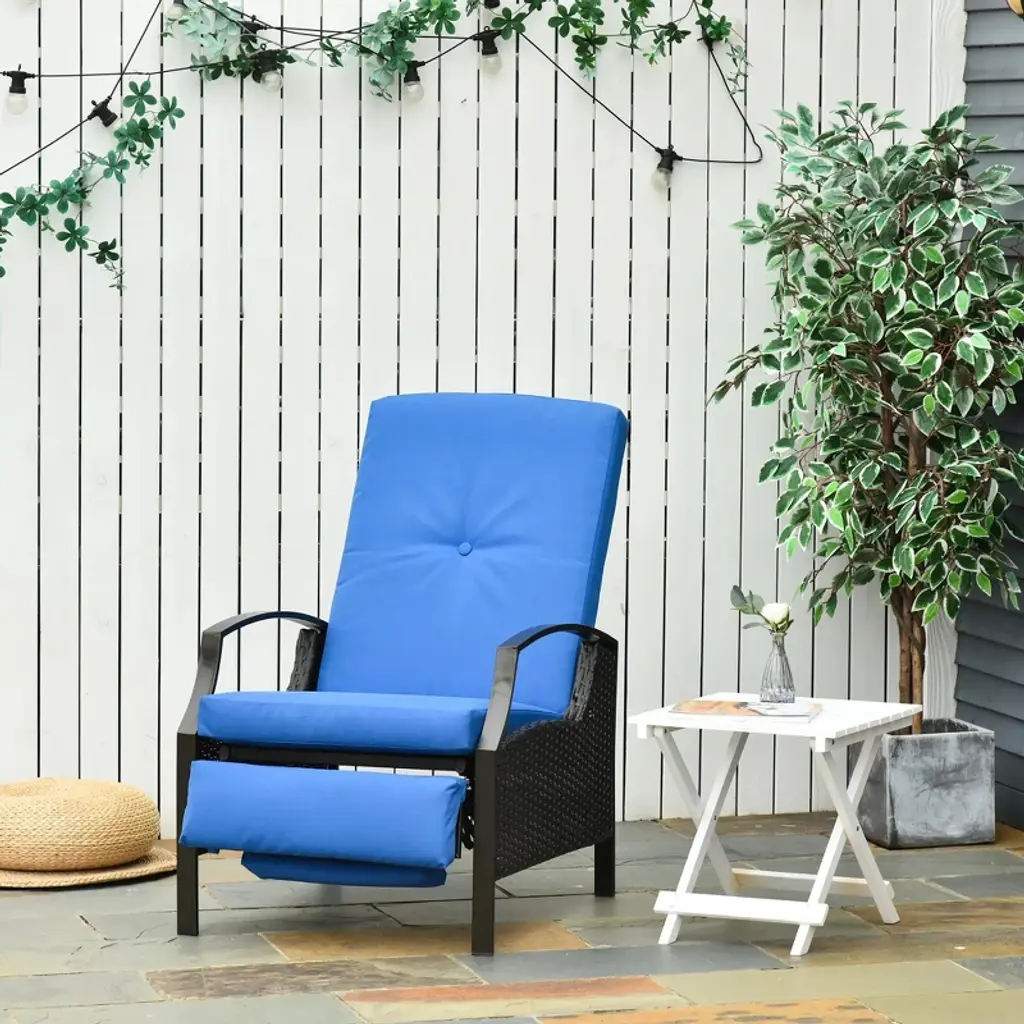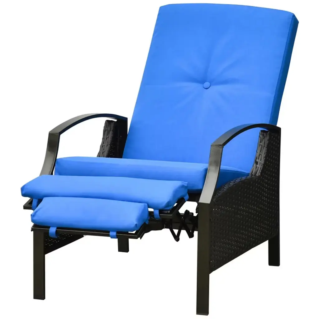 Resenkos Outdoor Comfort Deluxe Lounge Chair, Reclining Patio Lounge With Cushions & Footrest, Pe Wicker For Balcony & Porch, Blue