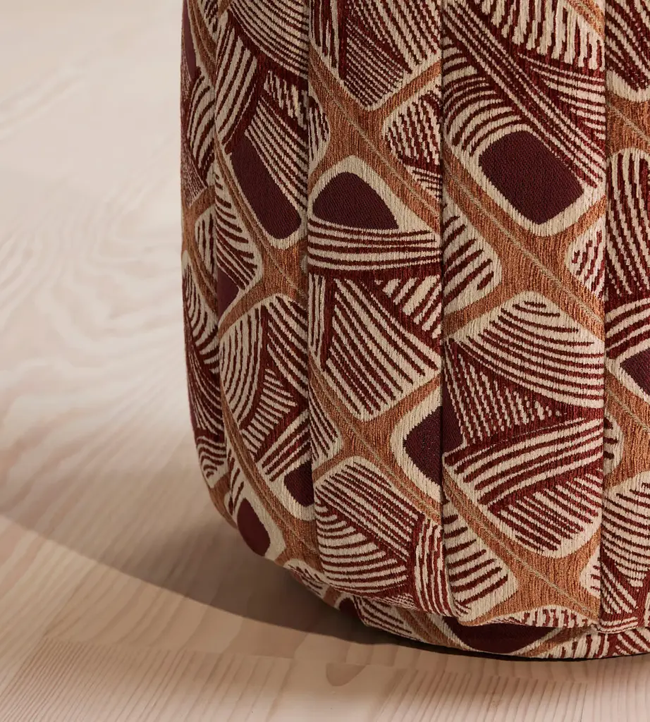 A compact, versatile silhouette fully upholstered in our geometric Ackley jacquard. Inspired by the textures in Soho House Rome, the Romi footstool is fully upholstered in a colorful, fluted jacquard with a piped trim. Its versatile design doubles up as extra seating for guests while socializing.
