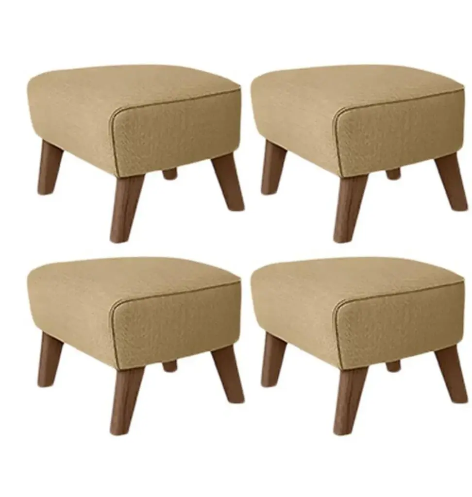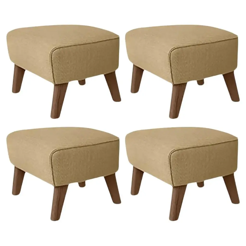 Set of 4 sand, smoked oak Raf Simons Vidar 3 My Own Chair Footstool by Lassen Dimensions: W 56 x D 58 x H 40 cm Materials: Textile Also available: other colors available, The My Own Chair Footstool has been designed in the same spirit as Flemming Lassen’s original iconic chair, reflecting his love of rounded shapes, simple forms and precise detailing, to enable the full relaxation effect. By Lassen is a Danish design brand focused on iconic designs created by Mogens and Flemming Lassen, founded by Lassens’ relatives in 2008.