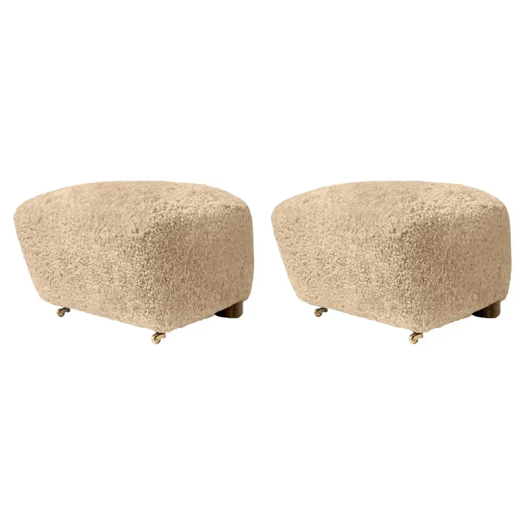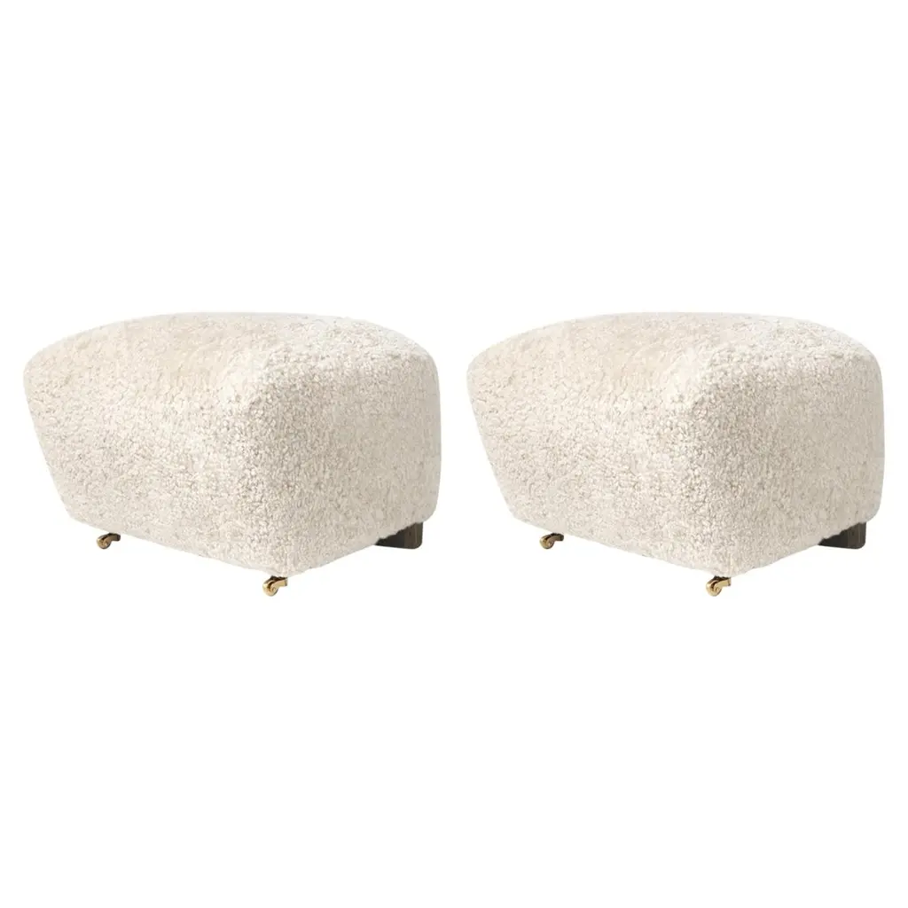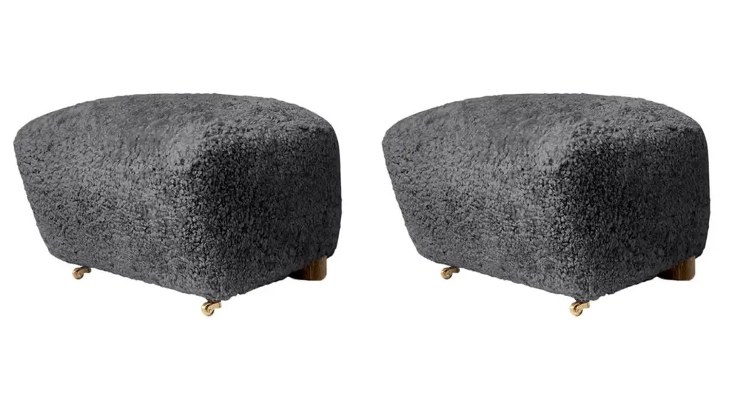 Set of 2 antrachite smoked oak sheepskin the tired man footstools by LassenDimensions: W 55 x D 53 x H 36 cm Materials: Sheepskin.Flemming Lassen designed the overstuffed easy chair, the tired man, for The Copenhagen Cabinetmakers’ Guild Competition in 1935. It is characterised by organic, bearlike shapes and then as now it created a sensation with its curved form and voluminous armrests. Sitting in the chair should, in Flemming Lassen’s own ords, be ”as warm and safe as a polar bear cub in the arms of its mother in the middle of the ice CAP”. The family man Flemming Lassen valued intimate relationships - with its warm exterior, The Tired Man invokes domestic cosiness and socialising by candlelight.By Lassen is a Danish design brand focused on iconic designs created by Mogens and Flemming Lassen, founded by Lassens’ relatives in 2008. Brothers Mogens (1901-1987) and Flemming (1902-1984) Lassen are known as two of Denmark’s greatest architects and designers. Both were renowned pioneers of Danish functionalism and modernist architecture, honoured with numerous prestigious medals and awards. Headed by Mogens Lassen’s grandson Søren Lassen, By Lassen carries on the brothers’ design philosophy by manufacturing their iconic designs as well as products by other designers that complement the Lassen’s functionalist style. The company’s Mission is to continue the tradition of timelessness, functionality and quality, and to introduce the Lassen’s design heritage to new generations.