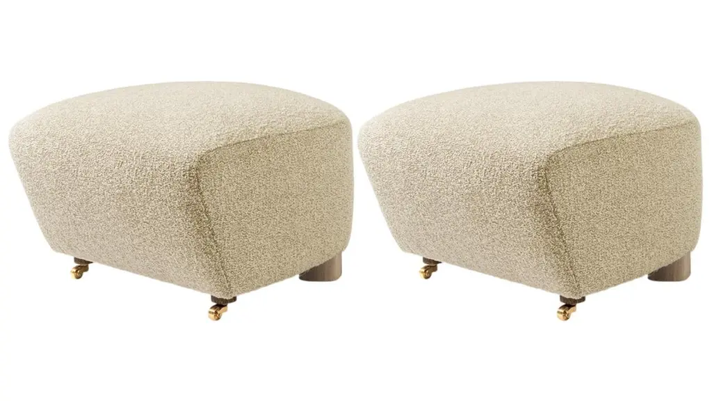 Set of 2 beige natural oak sahco zero the tired man footstool by LassenDimensions: W 55 x D 53 x H 36 cm Materials: TextileFlemming Lassen designed the overstuffed easy chair, The Tired Man, for The Copenhagen Cabinetmakers’ Guild Competition in 1935. It is characterised by organic, bearlike shapes and then as now it created a sensation with its curved form and voluminous armrests. Sitting in the chair should, in Flemming Lassen’s own ords, be” as warm and safe as a polar bear cub in the arms of its mother in the middle of the ice CAP”. The family man Flemming Lassen valued intimate relationships - with its warm exterior, The Tired Man invokes domestic cosiness and socialising by candlelight.By Lassen is a Danish design brand focused on iconic designs created by Mogens and Flemming Lassen, founded by Lassens’ relatives in 2008. Brothers Mogens (1901-1987) and Flemming (1902-1984) Lassen are known as two of Denmark’s greatest architects and designers. Both were renowned pioneers of Danish functionalism and modernist architecture, honoured with numerous prestigious medals and awards. Headed by Mogens Lassen’s grandson Søren Lassen, by Lassen carries on the brothers’ design philosophy by manufacturing their iconic designs as well as products by other designers that complement the Lassen’s functionalist style. The company’s Mission is to continue the tradition of timelessness, functionality and quality, and to introduce the Lassen’s design heritage to new generations.