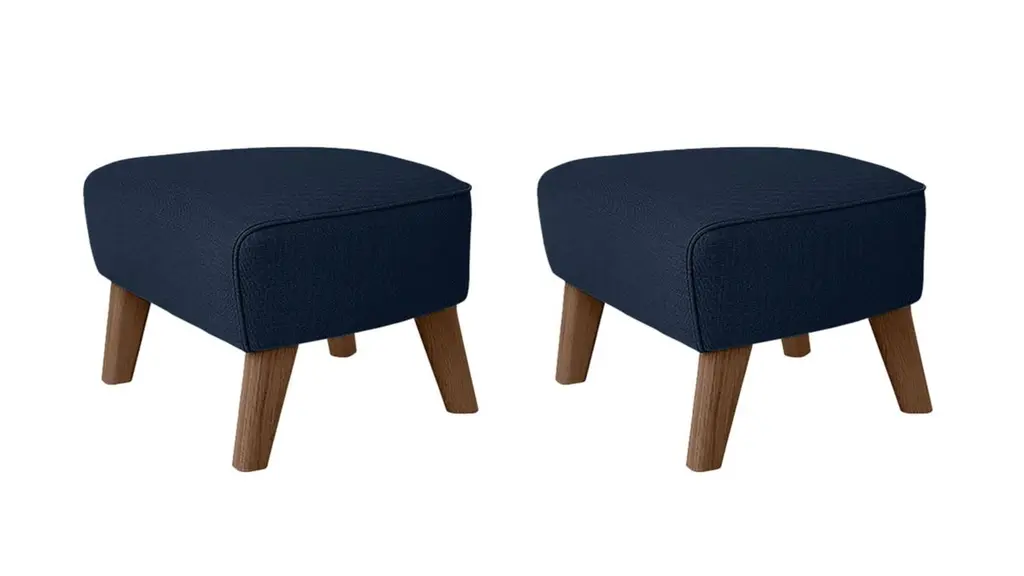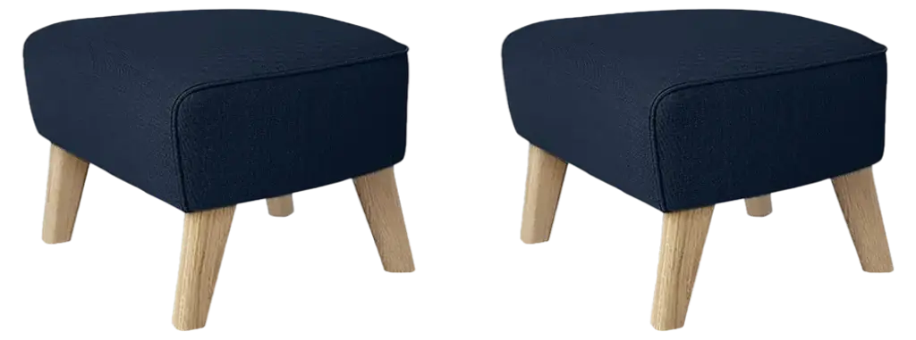 Set of 2 blue and smoked Oak Sahco zero footstool by LassenDimensions: w 56 x d 58 x h 40 cm Materials: TextileAlso Available: Other colors available.The My Own Chair footstool has been designed in the same spirit as Flemming Lassen’s original iconic chair, reflecting his love of rounded shapes, simple forms and precise detailing, to enable the full relaxation effect.By Lassen is a Danish design brand focused on iconic designs created by Mogens and Flemming Lassen, founded by Lassens’ relatives in 2008. Brothers Mogens (1901-1987) and Flemming (1902-1984) Lassen are known as two of Denmark’s greatest architects and designers. Both were renowned pioneers of Danish functionalism and modernist architecture, honoured with numerous prestigious medals and awards. Headed by Mogens Lassen’s grandson Søren Lassen, By Lassen carries on the brothers’ design philosophy by manufacturing their iconic designs as well as products by other designers that complement the Lassen’s functionalist style. The company’s Mission is to continue the tradition of timelessness, functionality and quality, and to introduce the Lassen’s design heritage to new generations.