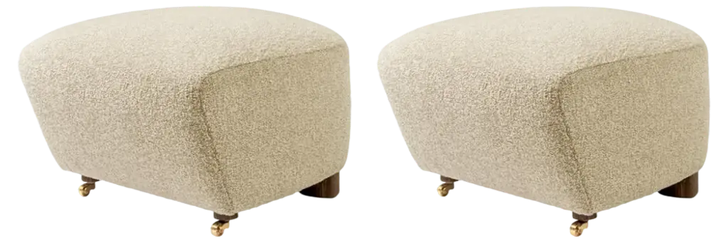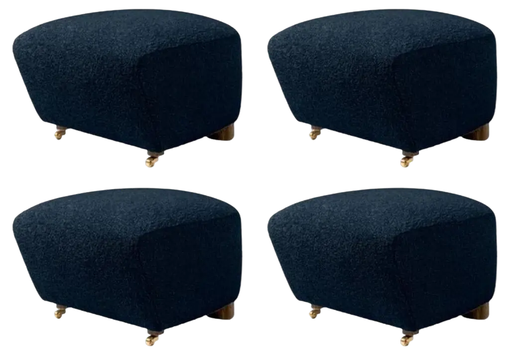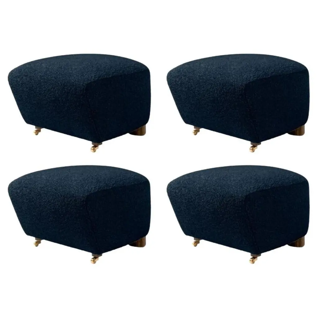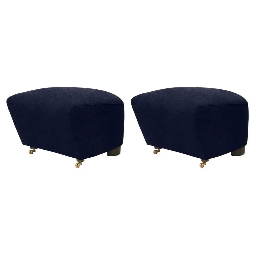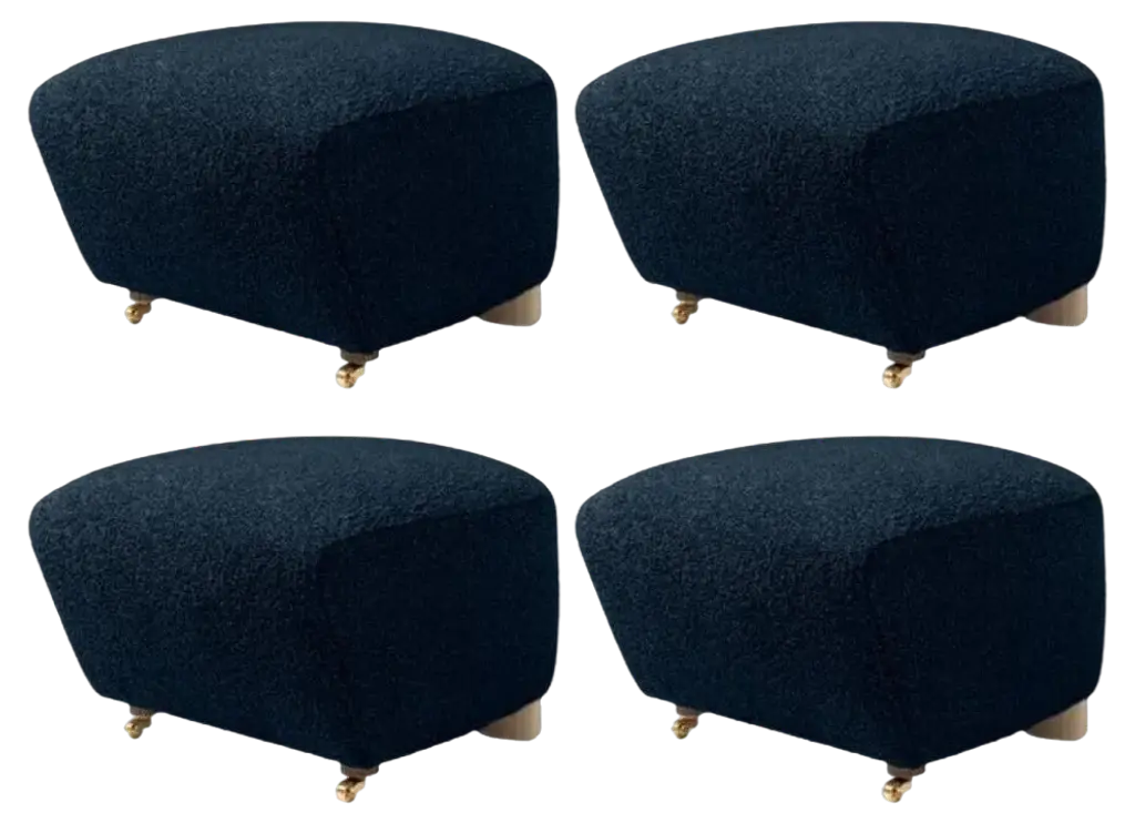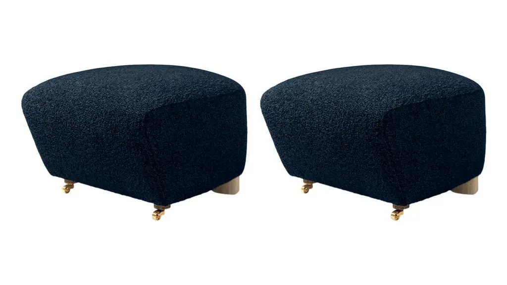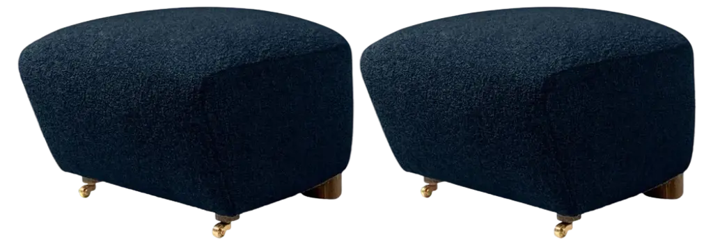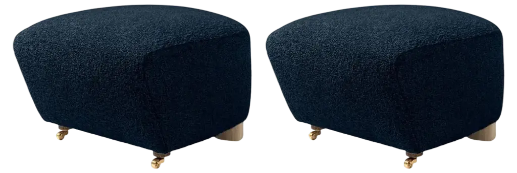 Set of 2 blue Natural Oak Sahco Zero the Tired Man footstools by LassenDimensions: W 55 x D 53 x H 36 cm Materials: TextileFlemming Lassen designed the overstuffed easy chair, The Tired Man, for The Copenhagen Cabinetmakers’ Guild Competition in 1935. It is characterised by organic, bearlike shapes and then as now it created a sensation with its curved form and voluminous armrests. Sitting in the chair should, in Flemming Lassen’s own ords, be ”as warm and safe as a polar bear cub in the arms of its mother in the middle of the ice cap”. The family man Flemming Lassen valued intimate relationships - with its warm exterior, The Tired Man invokes domestic cosiness and socialising by candlelight.By Lassen is a Danish design brand focused on iconic designs created by Mogens and Flemming Lassen, founded by Lassens’ relatives in 2008. Brothers Mogens (1901-1987) and Flemming (1902-1984) Lassen are known as two of Denmark’s greatest architects and designers. Both were renowned pioneers of Danish functionalism and modernist architecture, honoured with numerous prestigious medals and awards. Headed by Mogens Lassen’s grandson Søren Lassen, By Lassen carries on the brothers’ design philosophy by manufacturing their iconic designs as well as products by other designers that complement the Lassen’s functionalist style. The company’s mission is to continue the tradition of timelessness, functionality and quality, and to introduce the Lassen’s design heritage to new generations.