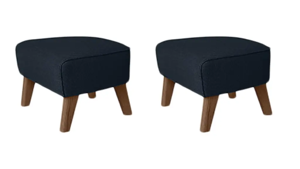 Set of 2 blue, smoked Oak Raf Simons Vidar 3 My Own Chair footstools by LassenDimensions: w 56 x d 58 x h 40 cm Materials: TextileAlso Available: Other colors available.The My Own Chair footstool has been designed in the same spirit as Flemming Lassen’s original iconic chair, reflecting his love of rounded shapes, simple forms and precise detailing, to enable the full relaxation effect.By Lassen is a Danish design brand focused on iconic designs created by Mogens and Flemming Lassen, founded by Lassens’ relatives in 2008. Brothers Mogens (1901-1987) and Flemming (1902-1984) Lassen are known as two of Denmark’s greatest architects and designers. Both were renowned pioneers of Danish functionalism and modernist architecture, honoured with numerous prestigious medals and awards. Headed by Mogens Lassen’s grandson Søren Lassen, By Lassen carries on the brothers’ design philosophy by manufacturing their iconic designs as well as products by other designers that complement the Lassen’s functionalist style. The company’s mission is to continue the tradition of timelessness, functionality and quality, and to introduce the Lassen’s design heritage to new generations.