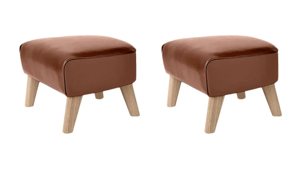 Set of 2 brown leather and natural oak My Own Chair Footstools by LassenDimensions: W 56 x D 58 x H 40 cm Materials: leatherThe My Own Chair Footstool has been designed in the same spirit as Flemming Lassen’s original iconic chair, reflecting his love of rounded shapes, simple forms and precise detailing, to enable the full relaxation effect.By Lassen is a Danish design brand focused on iconic designs created by Mogens and Flemming Lassen, founded by Lassens’ relatives in 2008. Brothers Mogens (1901-1987) and Flemming (1902-1984) Lassen are known as two of Denmark’s greatest architects and designers. Both were renowned pioneers of Danish functionalism and modernist architecture, honoured with numerous prestigious medals and awards. Headed by Mogens Lassen’s grandson Søren Lassen, By Lassen carries on the brothers’ design philosophy by manufacturing their iconic designs as well as products by other designers that complement the Lassen’s functionalist style. The company’s mission is to continue the tradition of timelessness, functionality and quality, and to introduce the Lassen’s design heritage to new generations.