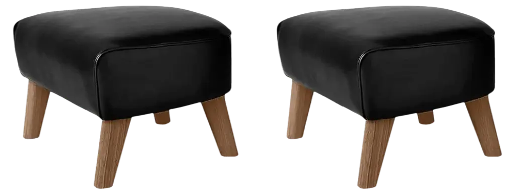 Set Of 2 Brown Leather And Smoked Oak My Own Chair Footstools By Lassen