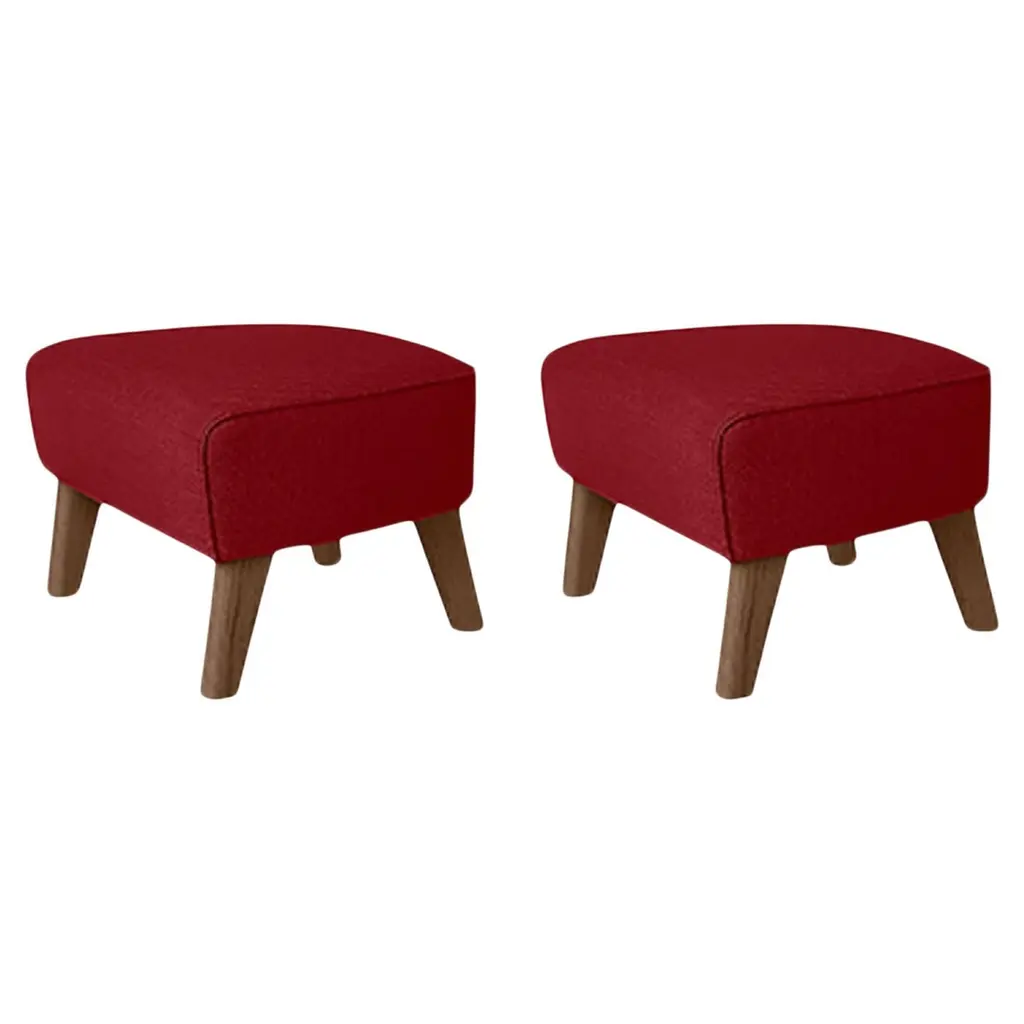 Set of 2 brown leather and smoked oak my own chair footstools by Lassen.Dimensions: W 56 x D 58 x H 40 cm .Materials: Leather.The my own chair footstool has been designed in the same spirit as Flemming Lassen’s original iconic chair, reflecting his love of rounded shapes, simple forms and precise detailing, to enable the full relaxation effect.By Lassen is a Danish design brand focused on iconic designs created by Mogens and Flemming Lassen, founded by Lassens’ relatives in 2008. Brothers Mogens (1901-1987) and Flemming (1902-1984) Lassen are known as two of Denmark’s greatest architects and designers. Both were renowned pioneers of Danish functionalism and modernist architecture, honoured with numerous prestigious medals and awards. Headed by Mogens Lassen’s grandson Søren Lassen, By Lassen carries on the brothers’ design philosophy by manufacturing their iconic designs as well as products by other designers that complement the Lassen’s functionalist style. The company’s mission is to continue the tradition of timelessness, functionality and quality, and to introduce the Lassen’s design heritage to new generations.