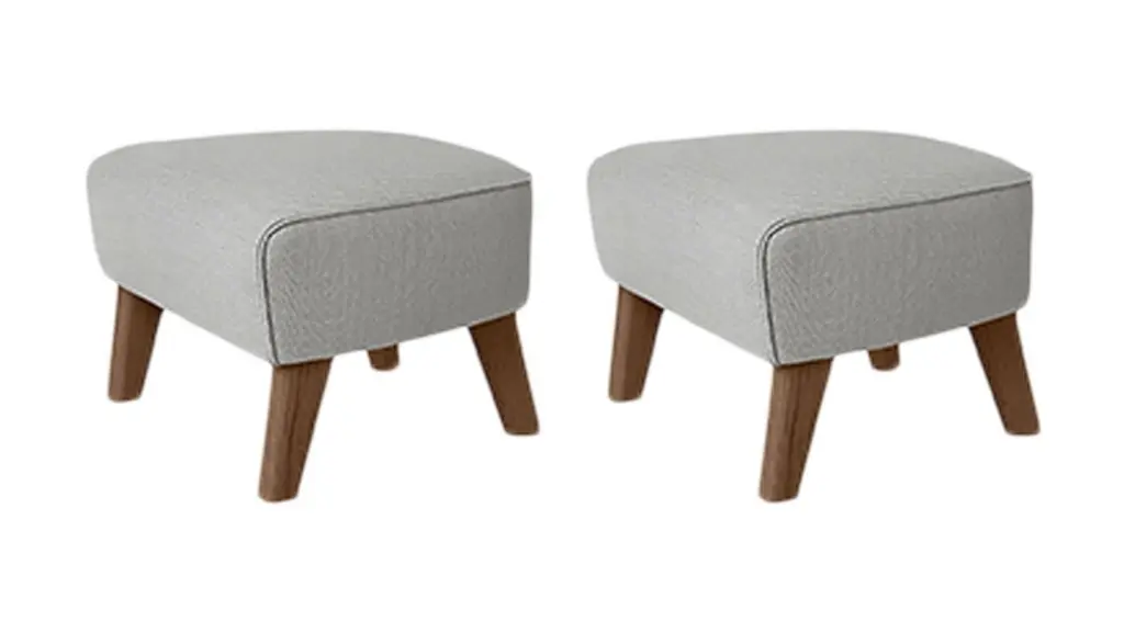 Set of 2 light grey, smoked oakraf simons vidar 3 my own chair footstool by Lassen.Dimensions: W 56 x D 58 x H 40 cm Materials: TextileAlso available: other colors available.The My Own Chair Footstool has been designed in the same spirit as Flemming Lassen’s original iconic chair, reflecting his love of rounded shapes, simple forms and precise detailing, to enable the full relaxation effect.By Lassen is a Danish design brand focused on iconic designs created by Mogens and Flemming Lassen, founded by Lassens’ relatives in 2008. Brothers Mogens (1901-1987) and Flemming (1902-1984) Lassen are known as two of Denmark’s greatest architects and designers. Both were renowned pioneers of Danish functionalism and modernist architecture, honoured with numerous prestigious medals and awards. Headed by Mogens Lassen’s grandson Søren Lassen, By Lassen carries on the brothers’ design philosophy by manufacturing their iconic designs as well as products by other designers that complement the Lassen’s functionalist style. The company’s Mission is to continue the tradition of timelessness, functionality and quality, and to introduce the Lassen’s design heritage to new generations.