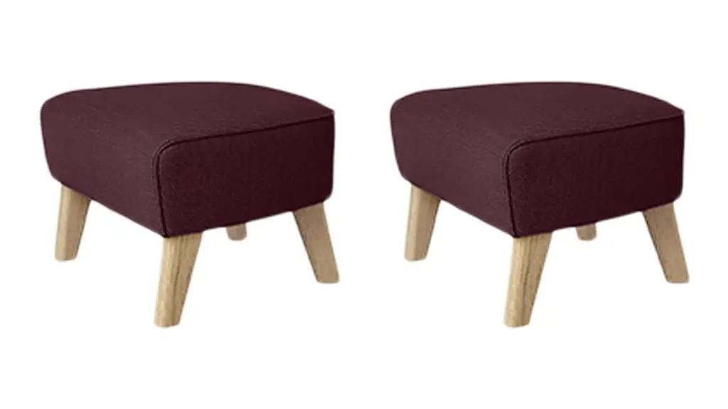 Set of 2 maroon, natural oak Raf Simons Vidar 3 my own chair footstool by LassenDimensions: W 56 x D 58 x H 40 cm Materials: TextileAlso available: Other colors availableThe my own chair footstool has been designed in the same spirit as Flemming Lassen’s original iconic chair, reflecting his love of rounded shapes, simple forms and precise detailing, to enable the full relaxation effect.By Lassen is a Danish design brand focused on iconic designs created by Mogens and Flemming Lassen, founded by Lassens’ relatives in 2008. Brothers Mogens (1901-1987) and Flemming (1902-1984) Lassen are known as two of Denmark’s greatest architects and designers. Both were renowned pioneers of Danish functionalism and modernist architecture, honoured with numerous prestigious medals and awards. Headed by Mogens Lassen’s grandson Søren Lassen, by Lassen carries on the brothers’ design philosophy by manufacturing their iconic designs as well as products by other designers that complement the Lassen’s functionalist style. The company’s mission is to continue the tradition of timelessness, functionality and quality, and to introduce the Lassen’s design heritage to new generations.