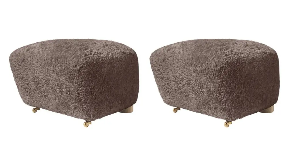 Set of 2 sahara natural oak sheepskin the tired man footstools by LassenDimensions: W 55 x D 53 x H 36 cm Materials: SheepskinFlemming Lassen designed the overstuffed easy chair, The Tired Man, for The Copenhagen Cabinetmakers’ Guild Competition in 1935. It is characterised by organic, bearlike shapes and then as now it created a sensation with its curved form and voluminous armrests. Sitting in the chair should, in Flemming Lassen’s own ords, be ”as warm and safe as a polar bear cub in the arms of its mother in the middle of the ice cap”. The family man Flemming Lassen valued intimate relationships - with its warm exterior, The Tired Man invokes domestic cosiness and socialising by candlelight.By Lassen is a Danish design brand focused on iconic designs created by Mogens and Flemming Lassen, founded by Lassens’ relatives in 2008. Brothers Mogens (1901-1987) and Flemming (1902-1984) Lassen are known as two of Denmark’s greatest architects and designers. Both were renowned pioneers of Danish functionalism and modernist architecture, honoured with numerous prestigious medals and awards. Headed by Mogens Lassen’s grandson Søren Lassen, By Lassen carries on the brothers’ design philosophy by manufacturing their iconic designs as well as products by other designers that complement the Lassen’s functionalist style. The company’s mission is to continue the tradition of timelessness, functionality and quality, and to introduce the Lassen’s design heritage to new generations.