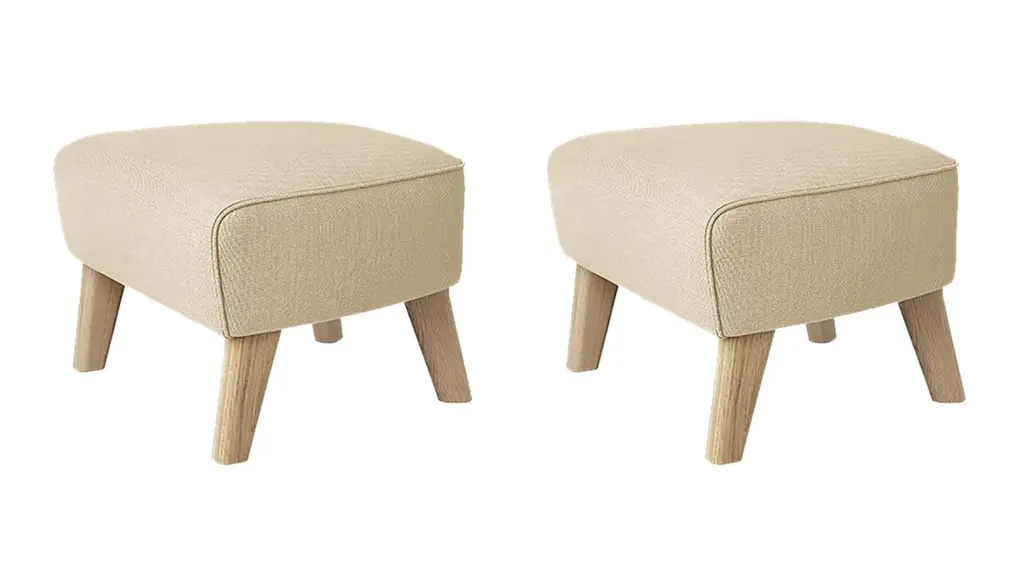 Set of 2 sand and natural oak Sahco Zero footstool by LassenDimensions: W 56 x D 58 x H 40 cm Materials: TextileAlso Available: Other colors available.The my own chair footstool has been designed in the same spirit as Flemming Lassen’s original iconic chair, reflecting his love of rounded shapes, simple forms and precise detailing, to enable the full relaxation effect.By Lassen is a Danish design brand focused on iconic designs created by Mogens and Flemming Lassen, founded by Lassens’ relatives in 2008. Brothers Mogens (1901-1987) and Flemming (1902-1984) Lassen are known as two of Denmark’s greatest architects and designers. Both were renowned pioneers of Danish functionalism and modernist architecture, honoured with numerous prestigious medals and awards. Headed by Mogens Lassen’s grandson Søren Lassen, By Lassen carries on the brothers’ design philosophy by manufacturing their iconic designs as well as products by other designers that complement the Lassen’s functionalist style. The company’s mission is to continue the tradition of timelessness, functionality and quality, and to introduce the Lassen’s design heritage to new generations.