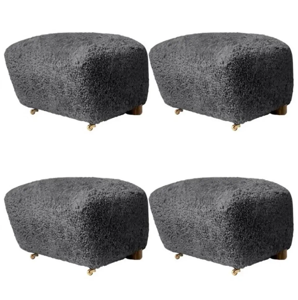 Set Of 4 Antrachite Smoked Oak Sheepskin The Tired Man Footstools By Lassen