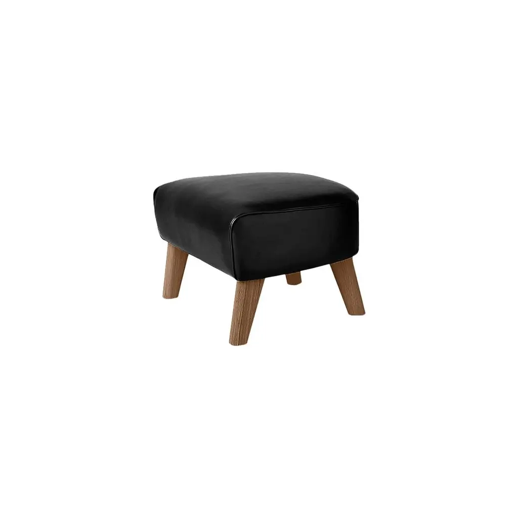 Set of 4 black leather and smoked oak my own chair footstools by lassen.Dimensions: W 56 x D 58 x H 40 cm Materials: LeatherThe My Own Chair Footstool has been designed in the same spirit as Flemming Lassen’s original iconic chair, reflecting his love of rounded shapes, simple forms and precise detailing, to enable the full relaxation effect.By Lassen is a Danish design brand focused on iconic designs created by Mogens and Flemming Lassen, founded by Lassens’ relatives in 2008. Brothers Mogens (1901-1987) and Flemming (1902-1984) Lassen are known as two of Denmark’s greatest architects and designers. Both were renowned pioneers of Danish functionalism and modernist architecture, honoured with numerous prestigious medals and awards. Headed by Mogens Lassen’s grandson Søren Lassen, By Lassen carries on the brothers’ design philosophy by manufacturing their iconic designs as well as products by other designers that complement the Lassen’s functionalist style. The company’s mission is to continue the tradition of timelessness, functionality and quality, and to introduce the Lassen’s design heritage to new generations.