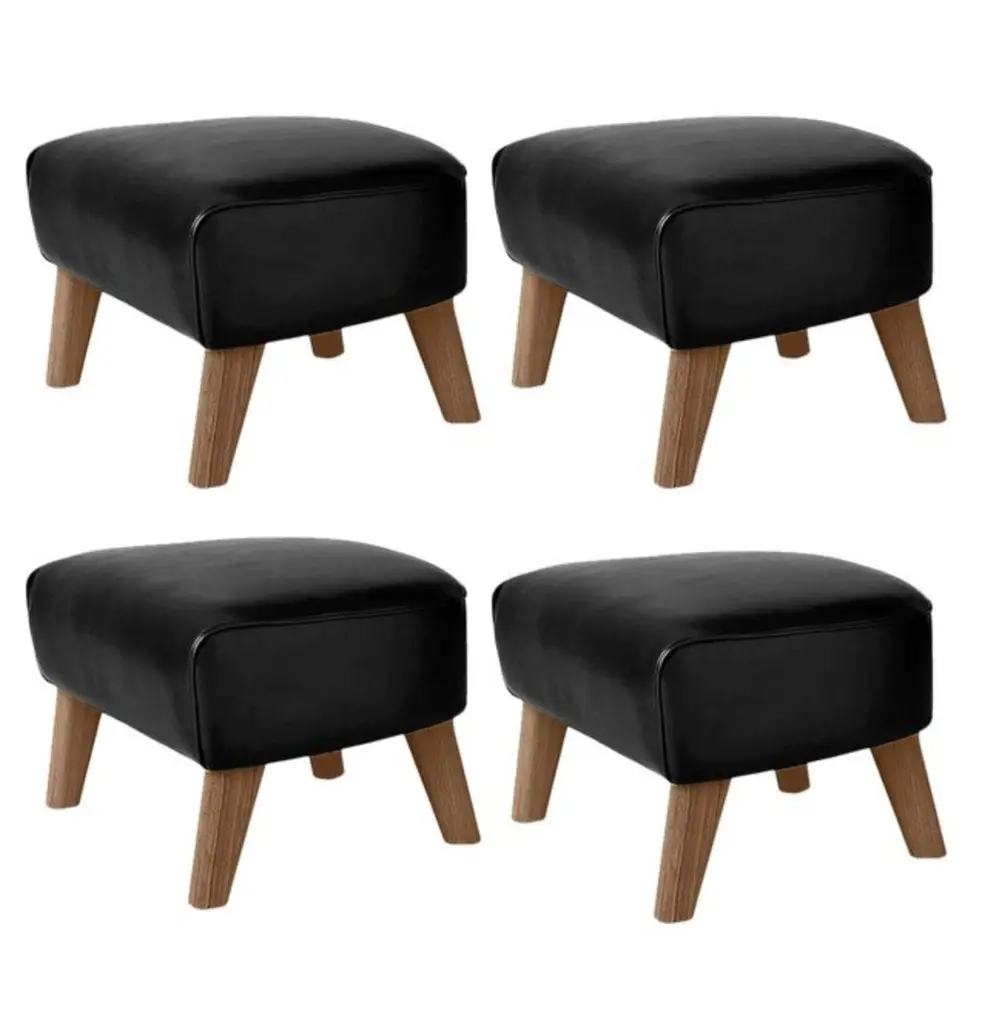 Set Of 4 Black Leather And Smoked Oak My Own Chair Footstools By Lassen
