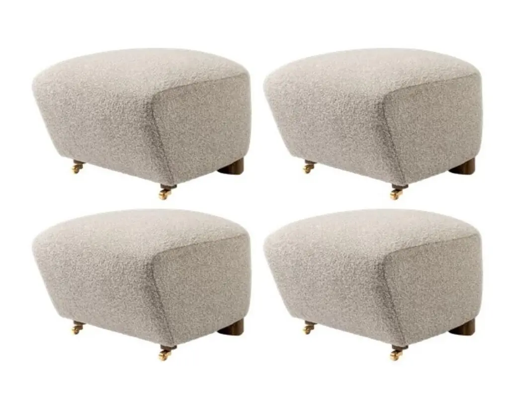 Set of 4 light beige smoked Oak Sahco Zero the Tired Man Footstool by LassenDimensions: W 55 x D 53 x H 36 cm Materials: TextileFlemming Lassen designed the overstuffed easy chair, The Tired Man, for The Copenhagen Cabinetmakers’ Guild Competition in 1935. It is characterised by organic, bearlike shapes and then as now it created a sensation with its curved form and voluminous armrests. Sitting in the chair should, in Flemming Lassen’s own ords, be ”as warm and safe as a polar bear cub in the arms of its mother in the middle of the ice cap”. The family man Flemming Lassen valued intimate relationships - with its warm exterior, The Tired Man invokes domestic cosiness and socialising by candlelight.By Lassen is a Danish design brand focused on iconic designs created by Mogens and Flemming Lassen, founded by Lassens’ relatives in 2008. Brothers Mogens (1901-1987) and Flemming (1902-1984) Lassen are known as two of Denmark’s greatest architects and designers. Both were renowned pioneers of Danish functionalism and modernist architecture, honoured with numerous prestigious medals and awards. Headed by Mogens Lassen’s grandson Søren Lassen, By Lassen carries on the brothers’ design philosophy by manufacturing their iconic designs as well as products by other designers that complement the Lassen’s functionalist style. The company’s mission is to continue the tradition of timelessness, functionality and quality, and to introduce the Lassen’s design heritage to new generations.