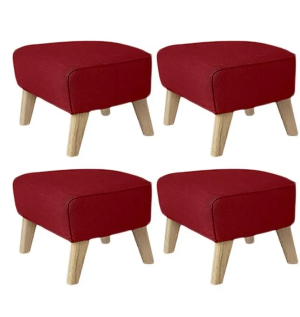 Set of 4 red, natural oak Raf Simons Vidar 3 my own chair footstool by LassenDimensions: w 56 x d 58 x h 40 cm Materials: TextileAlso Available: Other colors available.The My Own Chair footstool has been designed in the same spirit as Flemming Lassen’s original iconic chair, reflecting his love of rounded shapes, simple forms and precise detailing, to enable the full relaxation effect.By Lassen is a Danish design brand focused on iconic designs created by Mogens and Flemming Lassen, founded by Lassens’ relatives in 2008. Brothers Mogens (1901-1987) and Flemming (1902-1984) Lassen are known as two of Denmark’s greatest architects and designers. Both were renowned pioneers of Danish functionalism and modernist architecture, honoured with numerous prestigious medals and awards. Headed by Mogens Lassen’s grandson Søren Lassen, By Lassen carries on the brothers’ design philosophy by manufacturing their iconic designs as well as products by other designers that complement the Lassen’s functionalist style. The company’s Mission is to continue the tradition of timelessness, functionality and quality, and to introduce the Lassen’s design heritage to new generations.