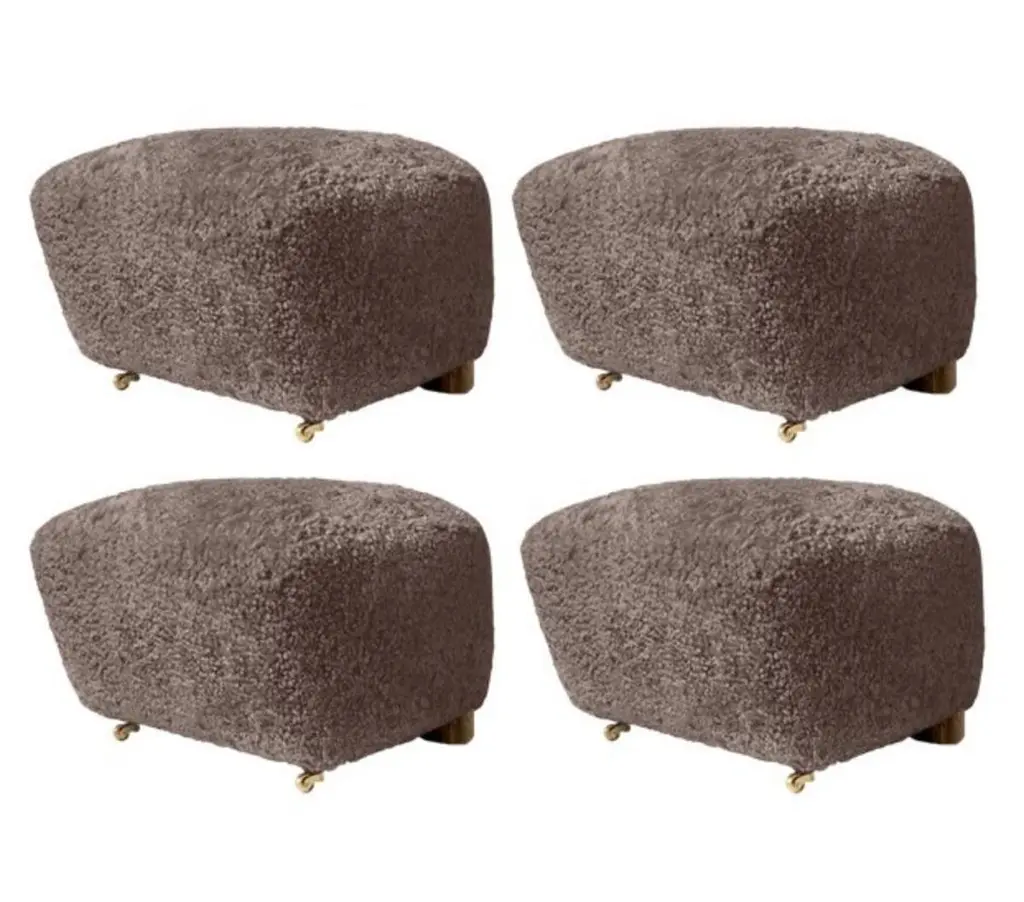 Set Of 4 Sahara Smoked Oak Sheepskin The Tired Man Footstools By Lassen