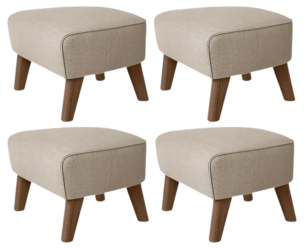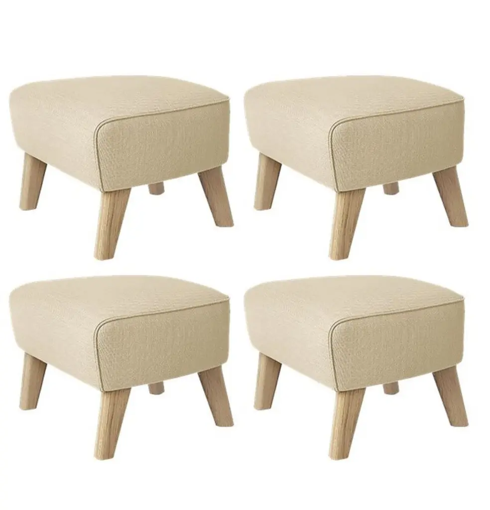 Set of 4 sand and natural oak sahco zero footstool by LassenDimensions: W 56 x D 58 x H 40 cm Materials: TextileAlso available: Other colors available.The my own chair footstool has been designed in the same spirit as Flemming Lassen’s original iconic chair, reflecting his love of rounded shapes, simple forms and precise detailing, to enable the full relaxation effect.By Lassen is a Danish design brand focused on iconic designs created by Mogens and Flemming Lassen, founded by Lassens’ relatives in 2008. Brothers Mogens (1901-1987) and Flemming (1902-1984) Lassen are known as two of Denmark’s greatest architects and designers. Both were renowned pioneers of Danish functionalism and modernist architecture, honoured with numerous prestigious medals and awards. Headed by Mogens Lassen’s grandson Søren Lassen, By Lassen carries on the brothers’ design philosophy by manufacturing their iconic designs as well as products by other designers that complement the Lassen’s functionalist style. The company’s Mission is to continue the tradition of timelessness, functionality and quality, and to introduce the Lassen’s design heritage to new generations.