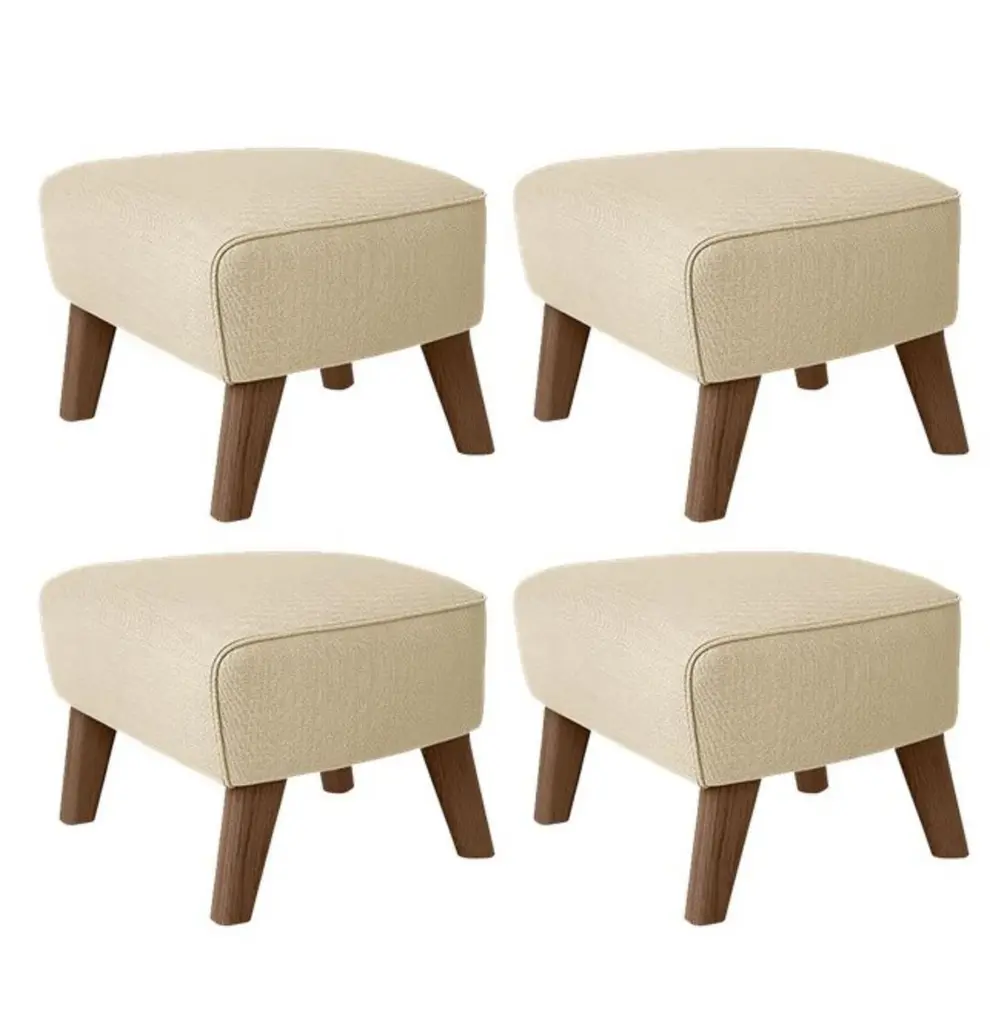 Set of 4 sand and smoked oak sahco zero footstool by LassenDimensions: W 56 x D 58 x H 40 cm Materials: TextileAlso available: Other colors available,The my own chair footstool has been designed in the same spirit as Flemming Lassen’s original iconic chair, reflecting his love of rounded shapes, simple forms and precise detailing, to enable the full relaxation effect.By Lassen is a Danish design brand focused on iconic designs created by Mogens and Flemming Lassen, founded by Lassens’ relatives in 2008. Brothers Mogens (1901-1987) and Flemming (1902-1984) Lassen are known as two of Denmark’s greatest architects and designers. Both were renowned pioneers of Danish functionalism and modernist architecture, honoured with numerous prestigious medals and awards. Headed by Mogens Lassen’s grandson Søren Lassen, By Lassen carries on the brothers’ design philosophy by manufacturing their iconic designs as well as products by other designers that complement the Lassen’s functionalist style. The company’s mission is to continue the tradition of timelessness, functionality and quality, and to introduce the Lassen’s design heritage to new generations.