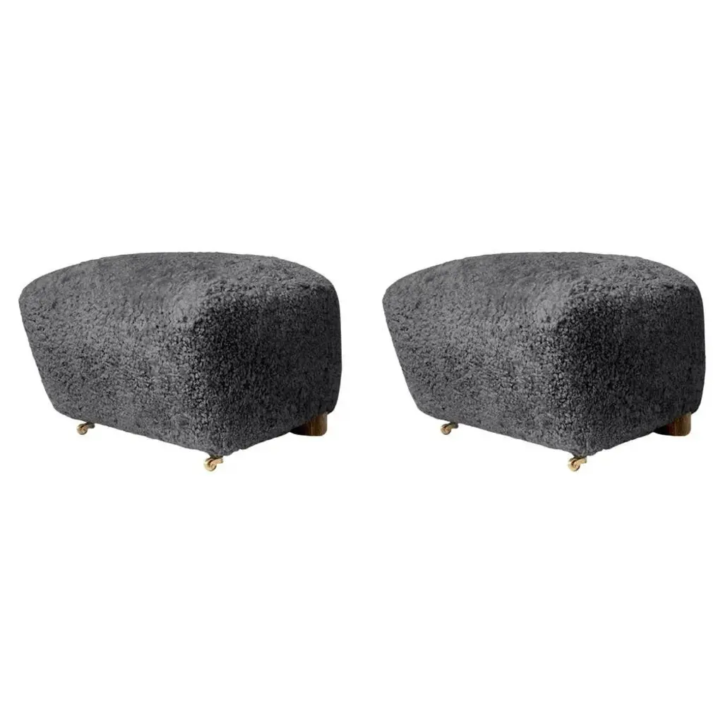 Set Of Antrachite Smoked Oak Sheepskin The Tired Man Footstools By Lassen