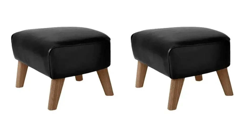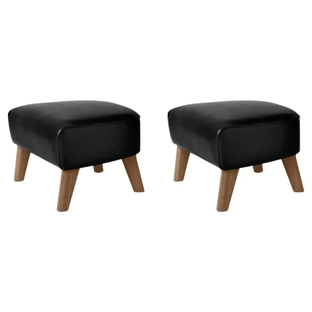 Set Of Black Leather And Smoked Oak My Own Chair Footstools By Lassen