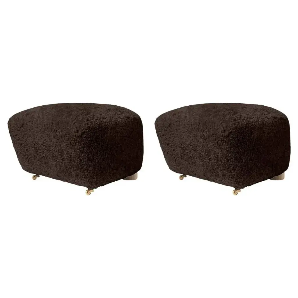 Set Of Espresso Natural Oak And Sheepskin The Tired Man Footstools By Lassen