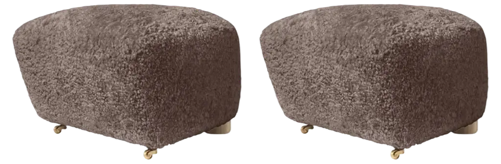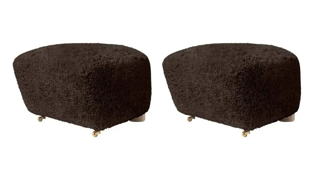 Set of 2 espresso natural oak sheepskin the tired man footstools by Lassen Dimensions: W 55 x D 53 x H 36 cm Materials: Sheepskin Flemming Lassen designed the overstuffed easy chair, The Tired Man, for The Copenhagen Cabinetmakers’ Guild Competition in 1935. It is characterised by organic, bearlike shapes and then as now it created a sensation with its curved form and voluminous armrests. Sitting in the chair should, in Flemming Lassen’s own ords, be ”as warm and safe as a polar bear cub in the arms of its mother in the middle of the ice cap”. The family man Flemming Lassen valued intimate relationships - with its warm exterior, The Tired Man invokes domestic cosiness and socialising by candlelight. By Lassen is a Danish design brand focused on iconic designs created by Mogens and Flemming Lassen, founded by Lassens’ relatives in 2008.