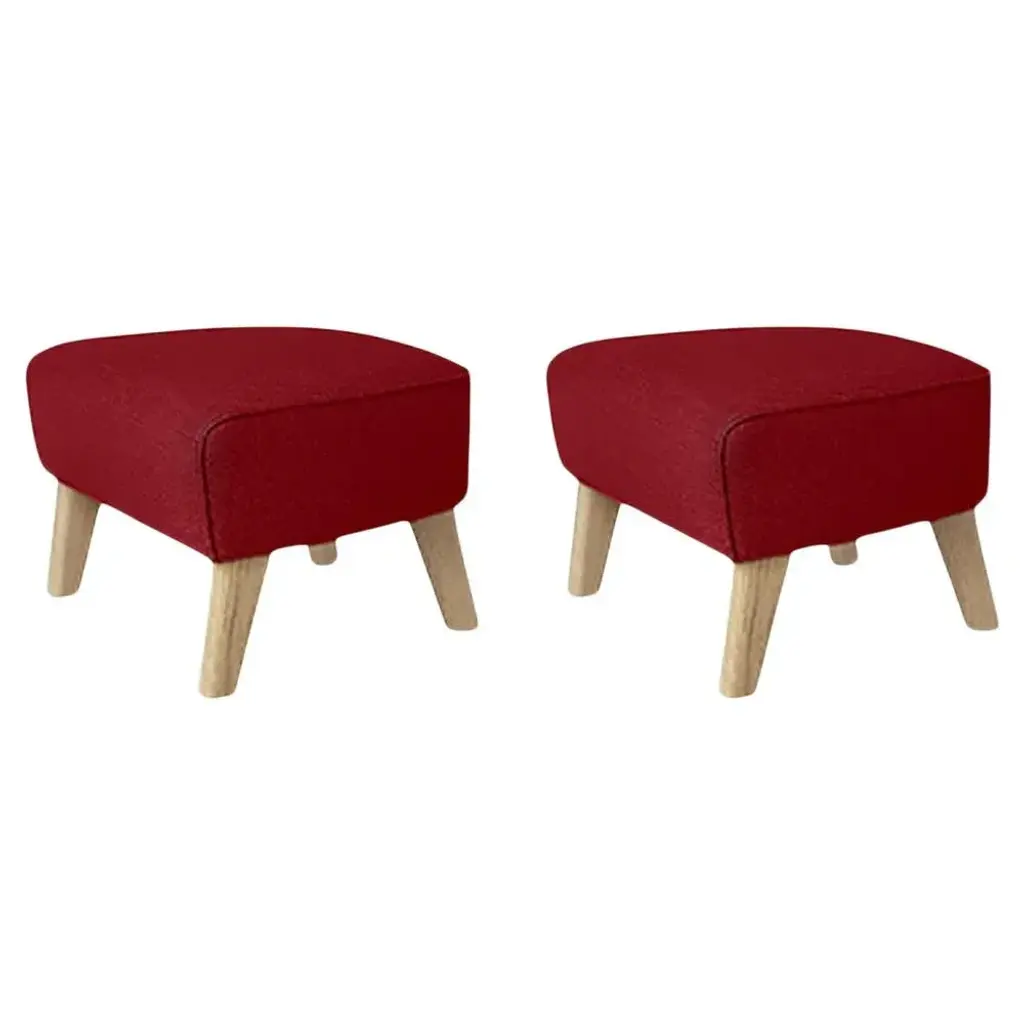 Set of 2 red, natural oak Raf Simons Vidar 3 My Own Chair Footstool by Lassen Dimensions: W 56 x D 58 x H 40 cm Materials: Textile Also available: Other colors available The My Own Chair Footstool has been designed in the same spirit as Flemming Lassen’s original iconic chair, reflecting his love of rounded shapes, simple forms and precise detailing, to enable the full relaxation effect.
