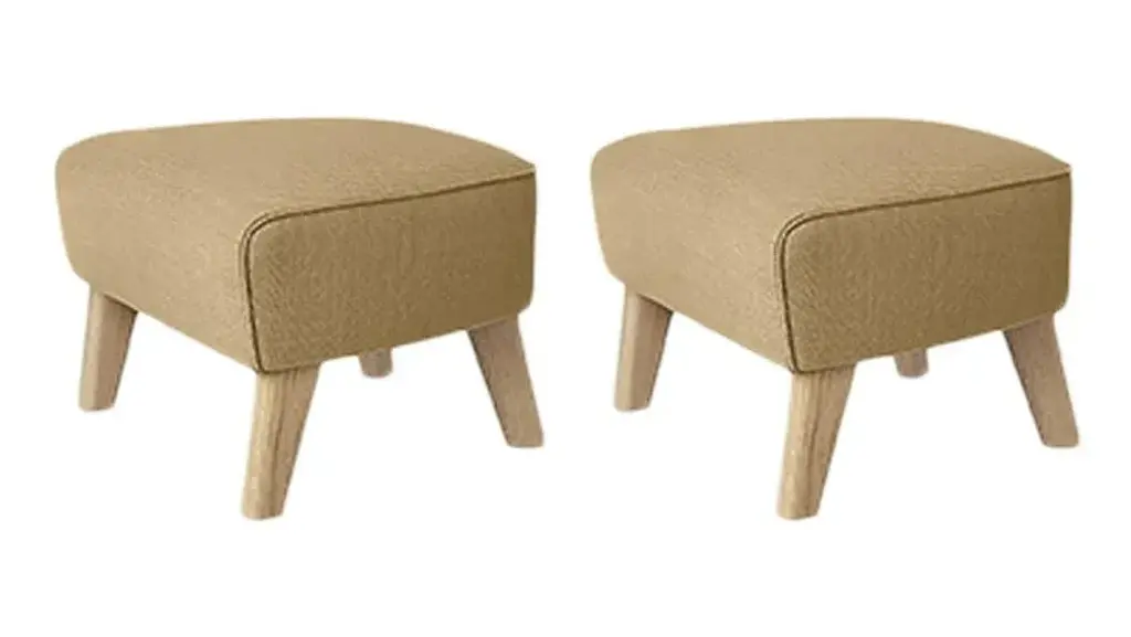 Set of 2 sand, natural Oak Raf Simons Vidar 3 My Own Chair footstool by Lassen Dimensions: W 56 x D 58 x H 40 cm Materials: Textile Also Available: Other colors available. The My Own Chair footstool has been designed in the same spirit as Flemming Lassen’s original iconic chair, reflecting his love of rounded shapes, simple forms and precise detailing, to enable the full relaxation effect.