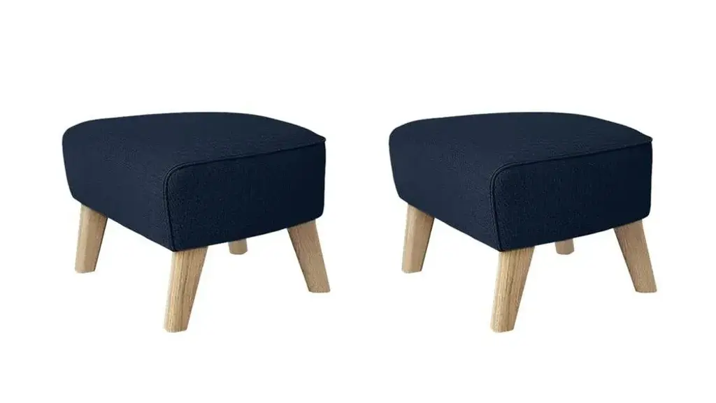 Set of 2 blue and natural oak sahco zero footstool by Lassen Dimensions: W 56 x D 58 x H 40 cm Materials: Textile Also available: Other colors available. The my own chair footstool has been designed in the same spirit as Flemming Lassen’s original iconic chair, reflecting his love of rounded shapes, simple forms and precise detailing, to enable the full relaxation effect.