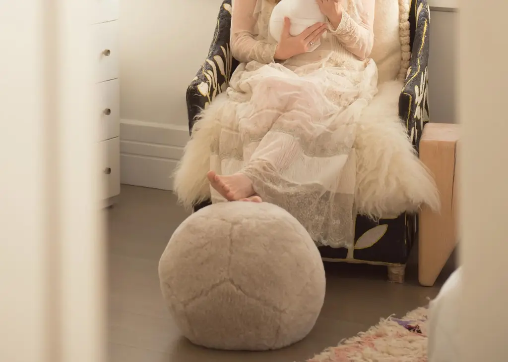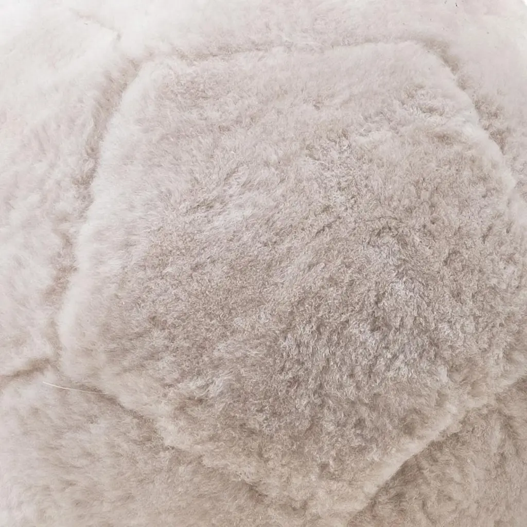 Functionality combined with elegance, the Ottoman X is a versatile piece of sculptural furniture. Cozy and inviting plush wool shearling has a textural hand and a soft feel. Its round shape is functional and playfully engaging. This shearling wool ottoman is commonly used to rest your feet and as alternative low seating. Handcrafted and hand-filled with an elongated laced closure detail. Our products are made to order in Long Island, NY.Color: Dune ShearlingDimensions: 14"Ø. Because our products are handcrafted, dimensions may vary slightly. Materials: Shearling, Leather, Foam. This product is made of natural materials.Style no: IOT1502-14-PS149Production time: 6-8 weeks. Rush fee is an additional 25%.