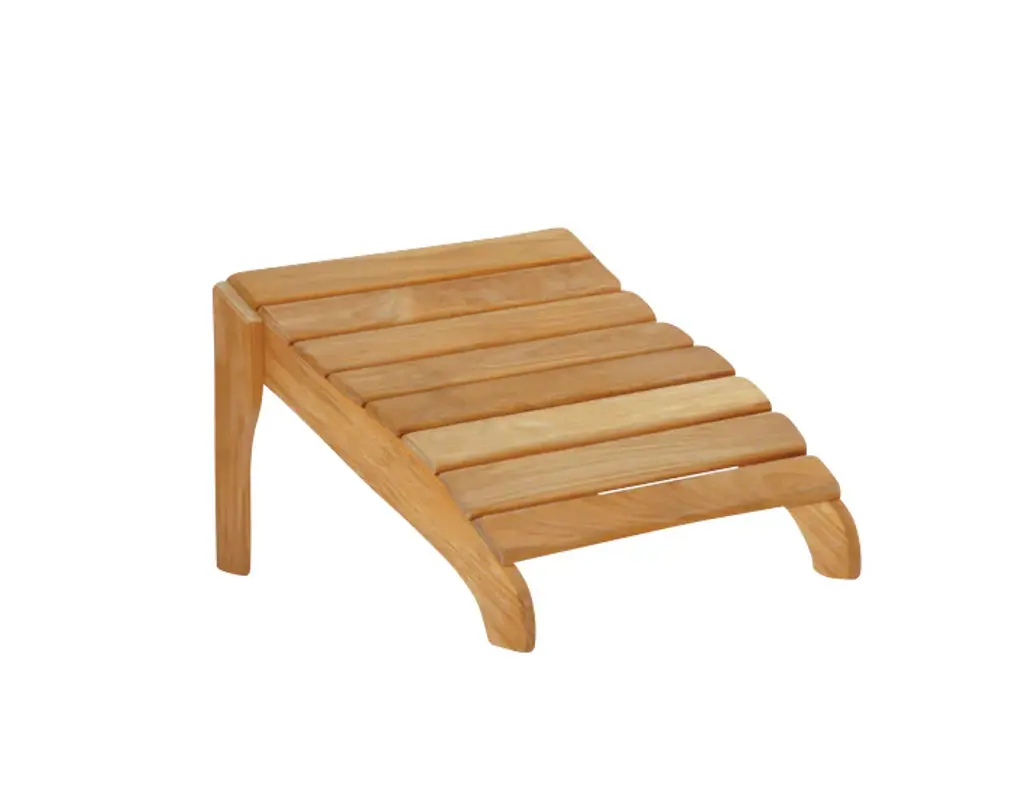 The Regatta Footstool matches the Regatta Lounge Chair and is made of solid teak slats and offers a sturdy foundation with its solid frame, yet it is a light-and-airy, elegant piece of furniture on the patio.