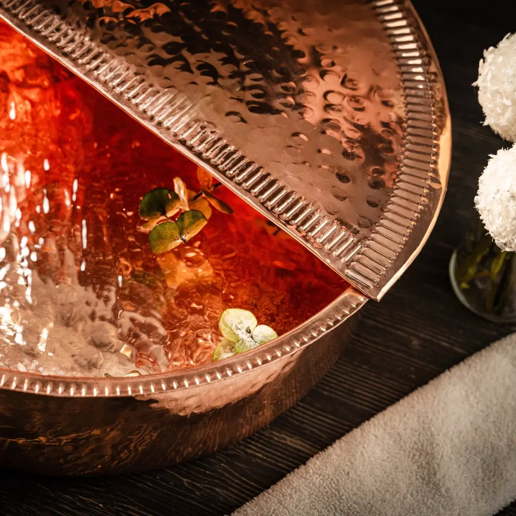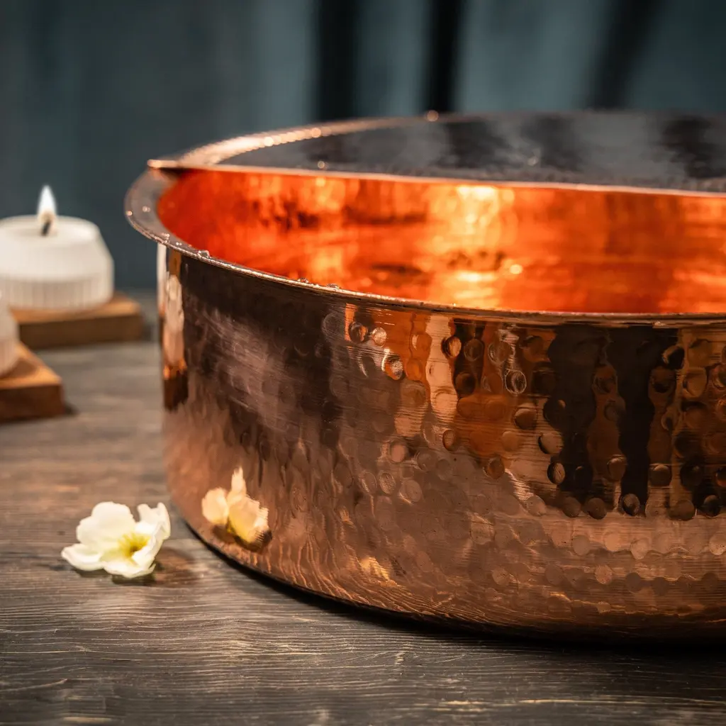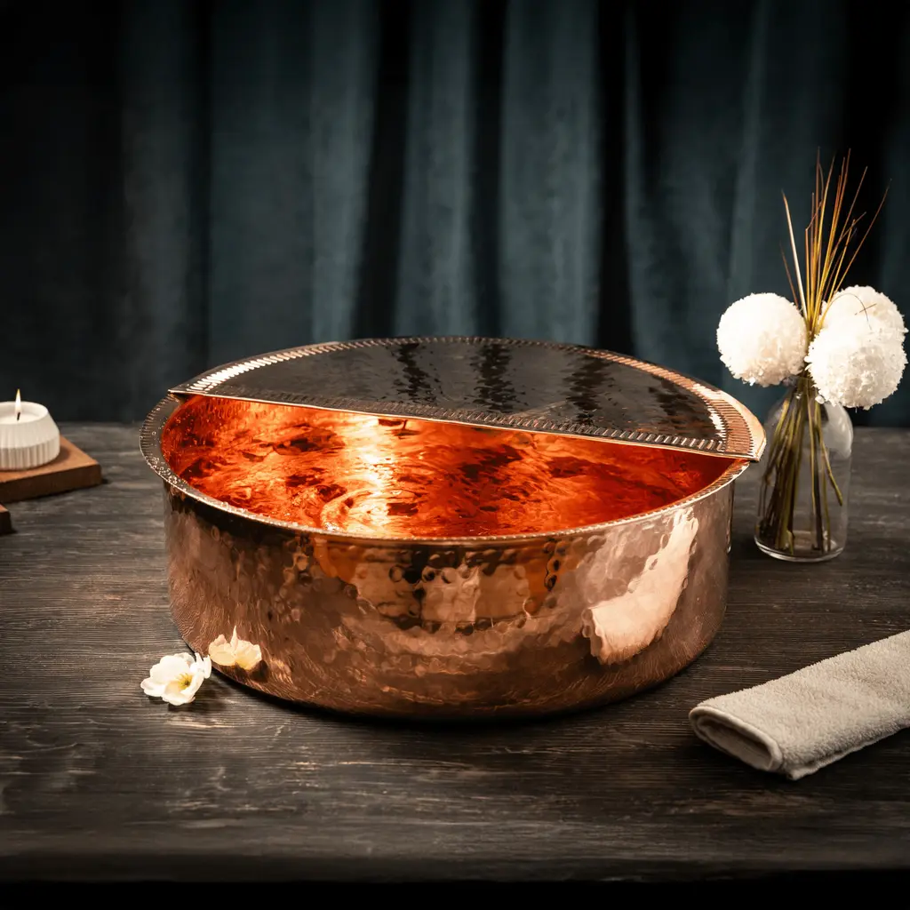 Elevate your wellness ritual with this Handcrafted Copper Pedicure Bowl—a refined blend of heritage craftsmanship and soothing self-care. Forged from 100% solid copper using traditional techniques, this hammered soaking basin delivers both aesthetic warmth and functional luxury. The richly textured surface enhances any spa space with rustic charm, while the natural antibacterial qualities of copper support a clean, therapeutic experience. A removable footrest adds ergonomic comfort, making each soak more enjoyable. Available in various sizes to suit your space, it’s a timeless addition to any home sanctuary or spa-inspired setting.