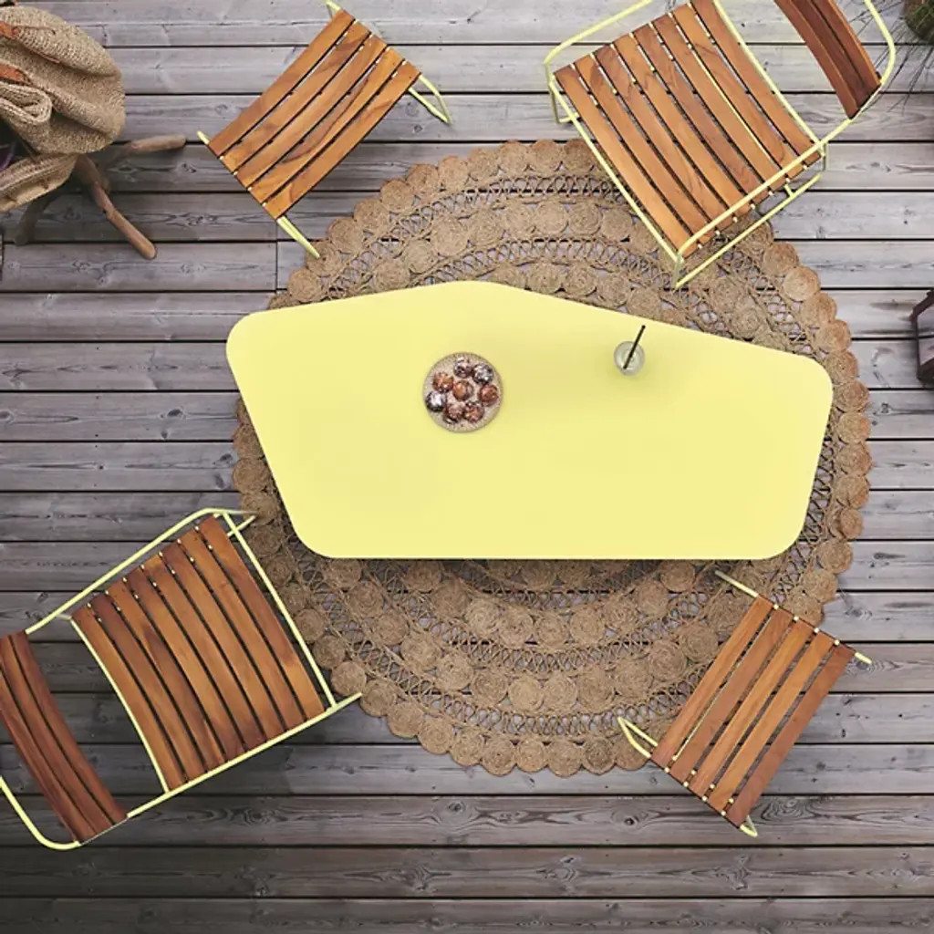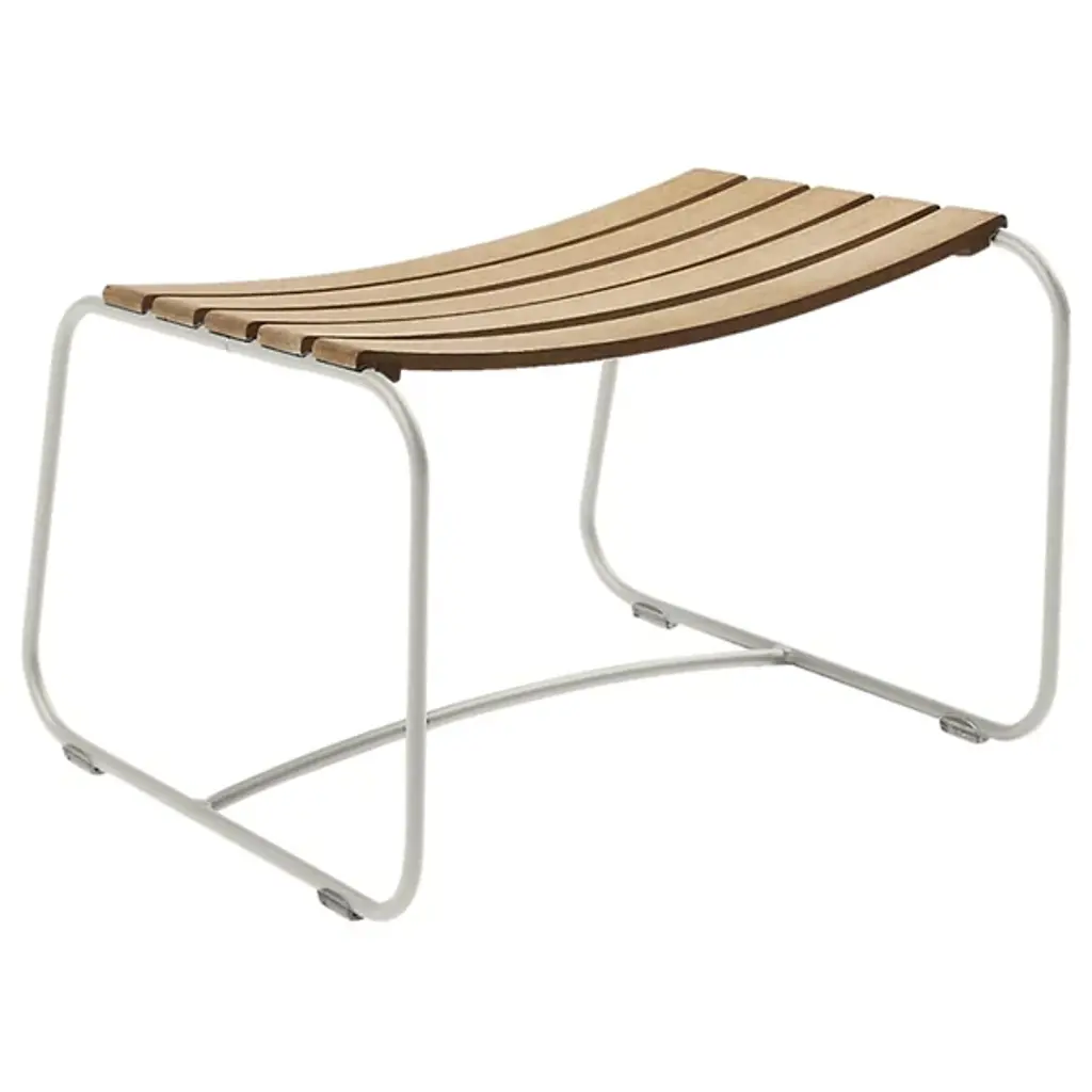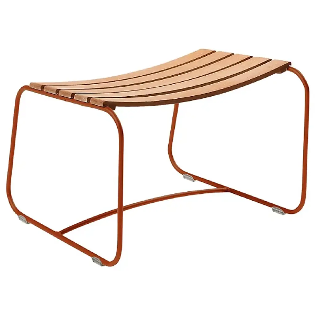 A lounge-worthy invitation. The Surprising Teak Footrest by Fermob invites comfort to your outdoor seating group. Designer Harold Guggenbichler conjures up vintage visions of classic teak steamer chairs on the decks of luxury liners in the early 1900s with the modern addition of a Steel rod frame. Gently contoured natural Teak slats provide an extra seat on the patio or restful lounging at the end of the day. Designed as a complement to the Surprising Teak Low Armchair, this stylish footrest provides relaxed seating and being lightweight, it easily moves from sun to shade and back again.